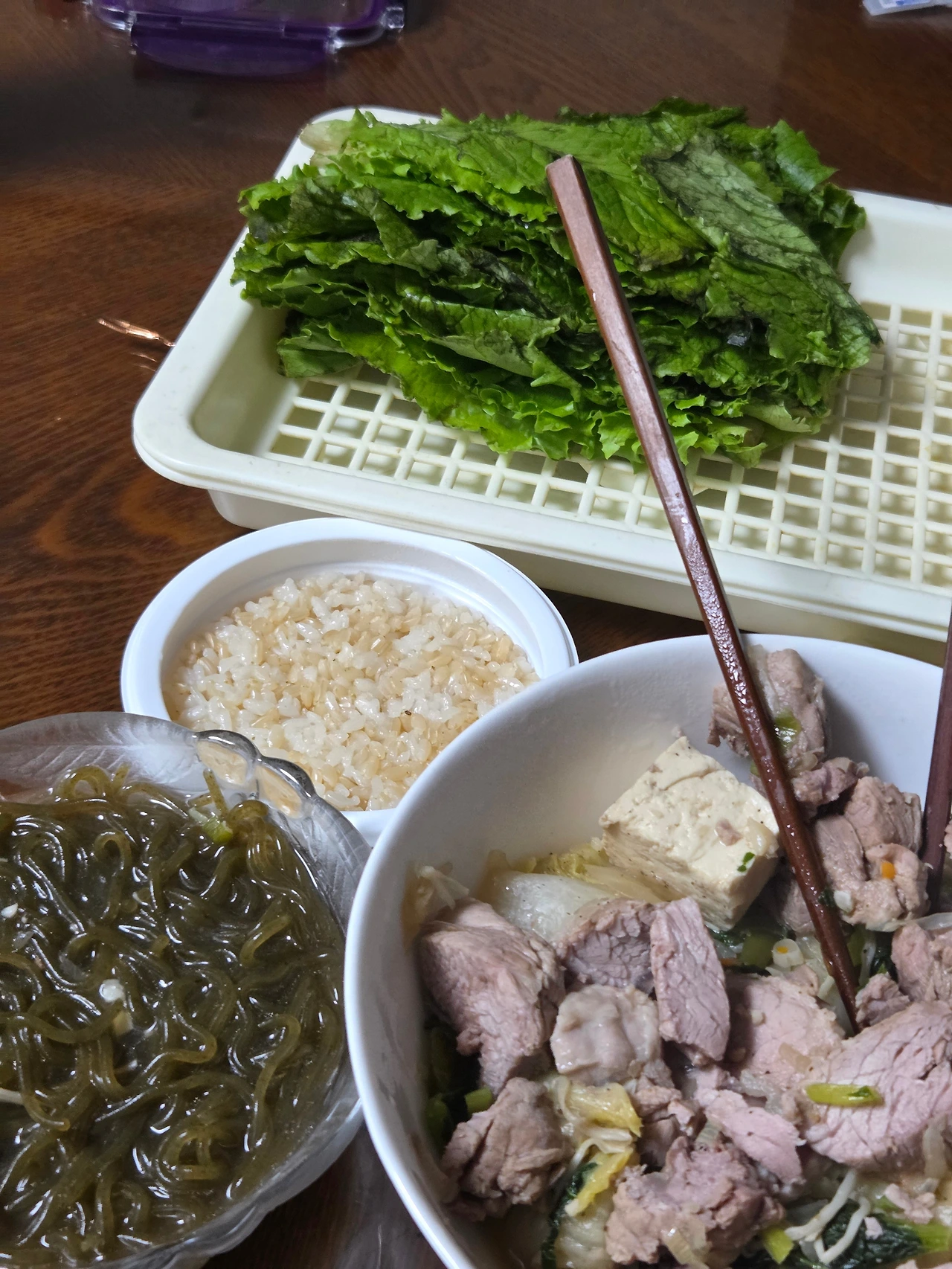 집에 있던 다시마면을 먹어보고 싶어서, 같이 먹어주었고...