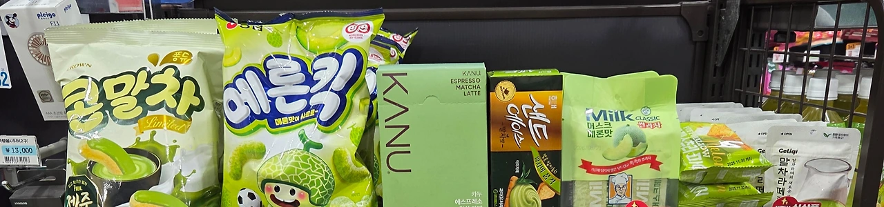 아래는 우리 편의점 신상품 매대다... 녹색 푸릇푸릇하게 말차+멜론으로 구성해 보았다.