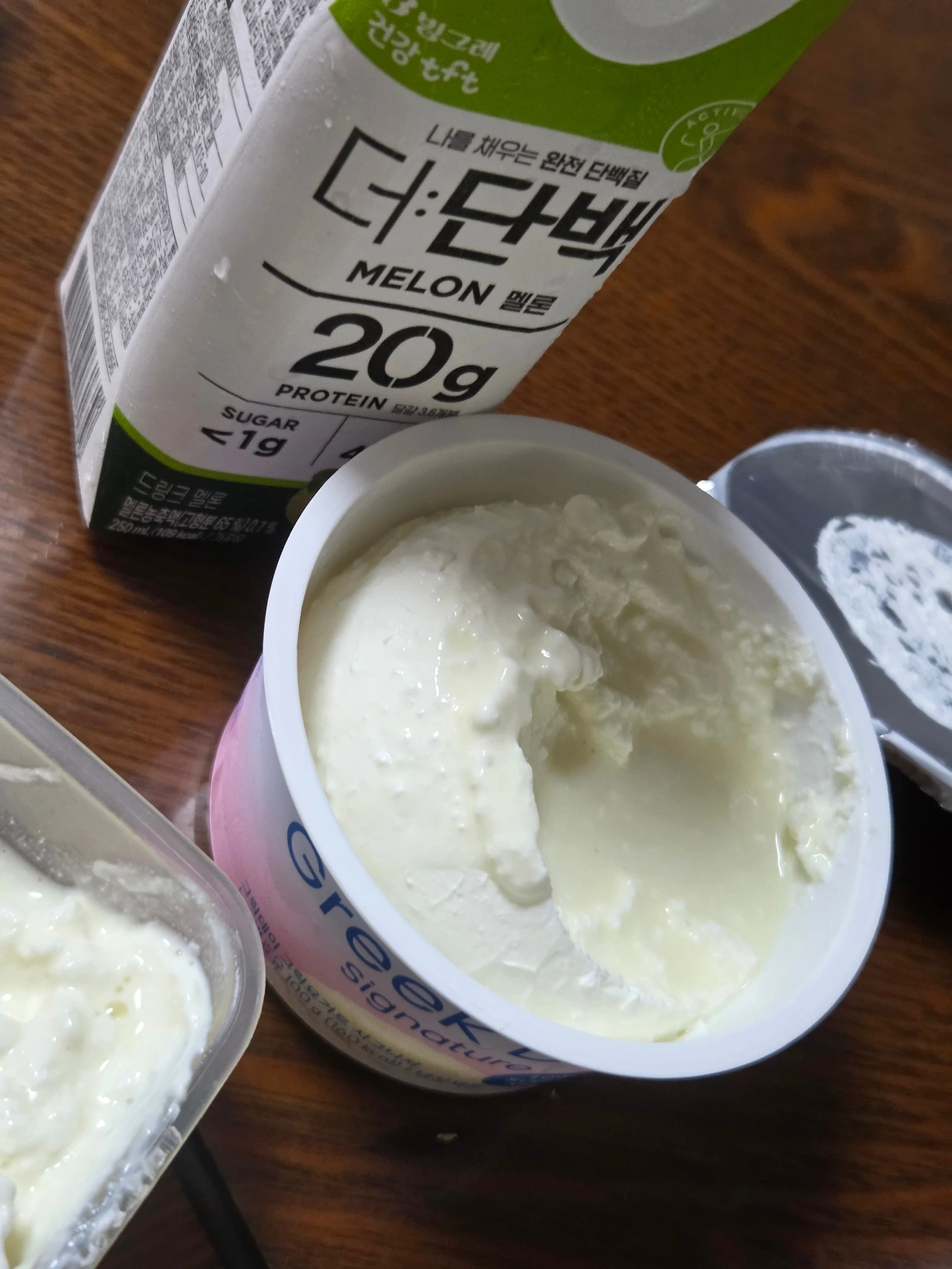 근데 멜론 그릭요거트는 무슨 맛일지 궁금했던 나는... 이것을 섞어서 소량 냉동고에 넣어놓기로 한다.