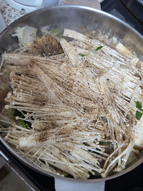 배추버섯숙주돼지고기찜을 위해 조리한 사진들도 올려놓기.