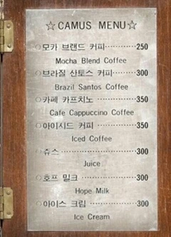 서울역사박물관에 보관 중인 1970년대 메뉴판. 커피값이 당시 돈으로 300~350원인데,