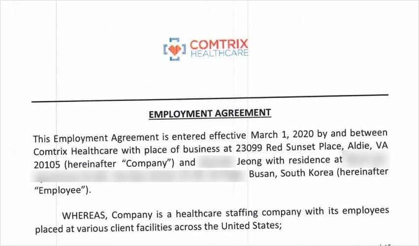 2019년 4월, 결국 병원을 그만두고, 영어에 전념하기로 하였다. 정말 다행히도 2019년 9월 결국 영어점수를 달성하였고, 이곳저곳 면접을 보다가 Comtrixhealthcare라는 에이전시와 계약을 하게 되었다. 플로리다에 위치한 회사였고, 시급은 23$/hr 로 계약을 하였다. 병원과 직접계약을 하는 것과는 시급 차이가 많이 난다.