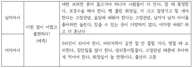 여자라서/남자라서 불편한 점을 듣고 이해할 틈 찾기 수업