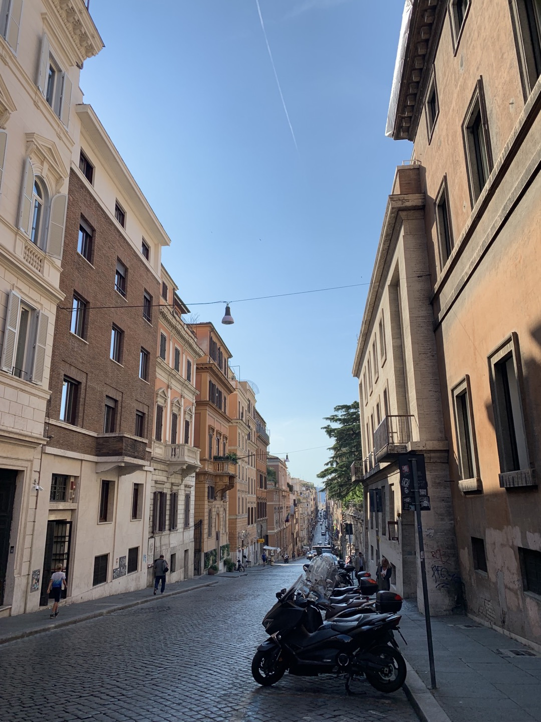 배도 든든히 채웠겠다, 소화도 시킬 겸 구시가지까지 걸어가 보기로 했다. 큼직큼직한 건물과 시원스레 펼쳐진 대로가 수도는 수도구나 싶었다. 코너를 돌아 골목길로 접어드는데, 얼마나 오랜 시간 사람들이 다녔는지 보도블록이 잘 다듬어진 조약돌처럼 반질반질 광이 났다. 대로도 대로지만, 로마는 골목길이 진짜 숨겨진 보석이었다. 영화에서 보던 뷰들이 여기저기서 튀어나오는데, 앞구르기 하면서 찍어도 A급 화보였다. 도시 전체가 영화의 무대로 쓰인다는 게 어떤 말인지 단번에 이해가 갔다. 당장이라도 골목에서 바이크를 탄 주인공이 악당들을 뒤꽁무니에 달고 나타날 것만 같았다.
