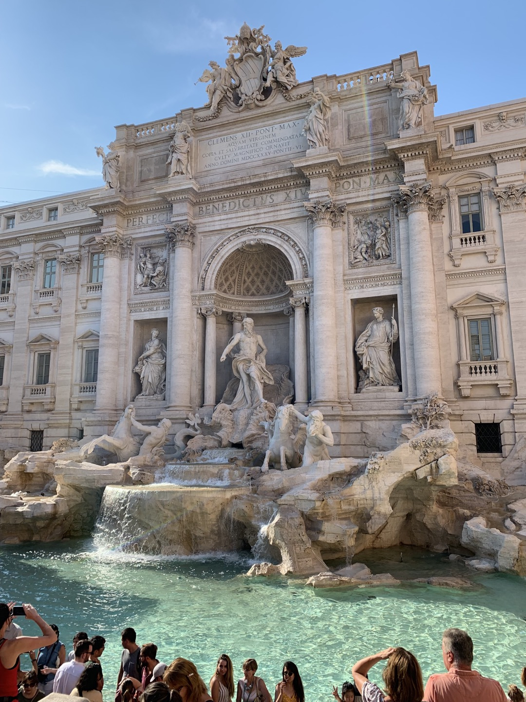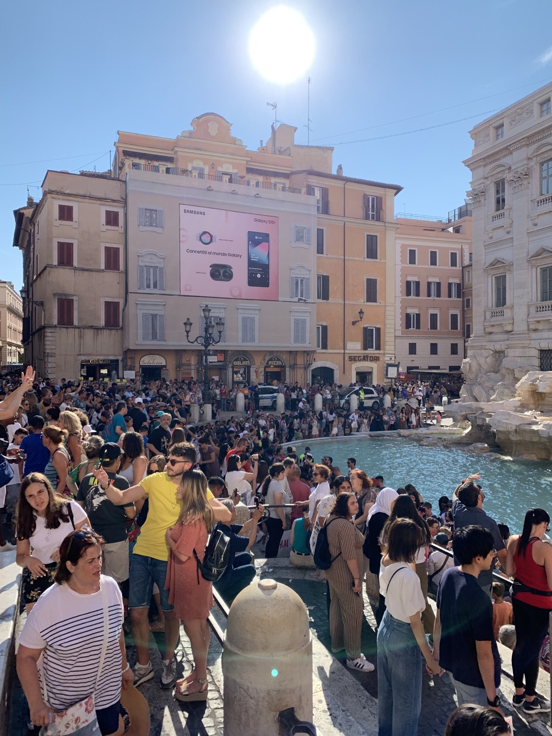 얼마나 걸었을까, 구시가지의 초입에 있는 트레비 분수에 도착했다. 분수는 시원스레 떨어졌지만 사람들이 워낙 많아서 한증막에 들어온 것처럼 후끈했다. 사진으로 보던 것에 비해 규모는 그리 크지 않았지만 조각상의 근육, 실핏줄 하나하나가 너무 사실적이어서 신화 속 인물들이 당장이라도 살아 움직일 것만 같았다. 으레 다른 여행자들처럼, 우리도 동전을 던지며 가족의 건강과 무사귀환을 빌었고 다닥다닥 붙은 사람들의 틈바구니 속에서 얼굴이 화면의 2분의 1을 차지하는 초근접 인증샷도 찍었다. 벽 한 면에는 삼성 갤럭시 광고가 대문짝만 하게 걸려있었는데 괜히 반가웠다. 먼 타국에서 한국을 느낄 수 있는 순간은 생각보다 흔치 않으니까! 물론 하루 광고료가 어떻게 될까 가 더 궁금하긴 했지만!!
