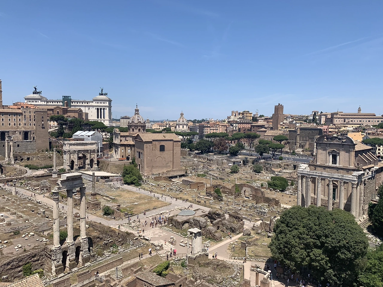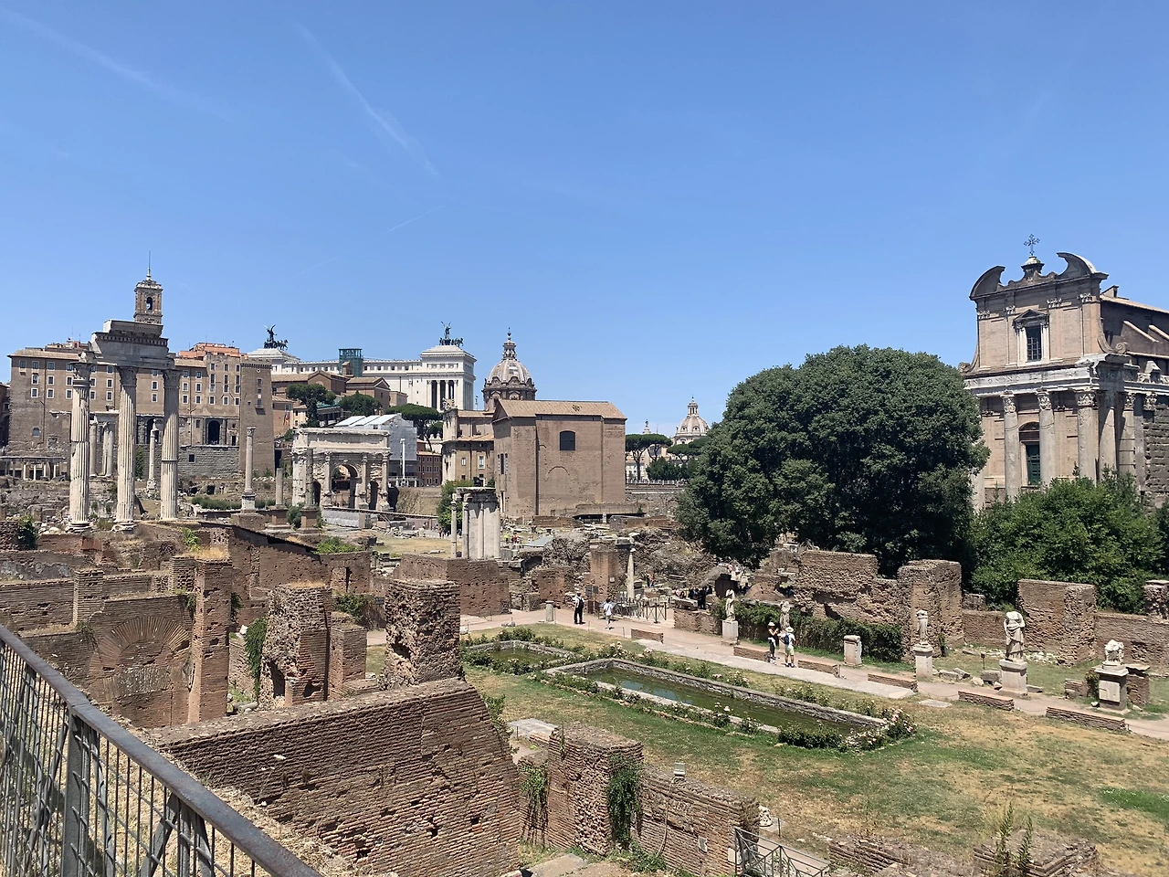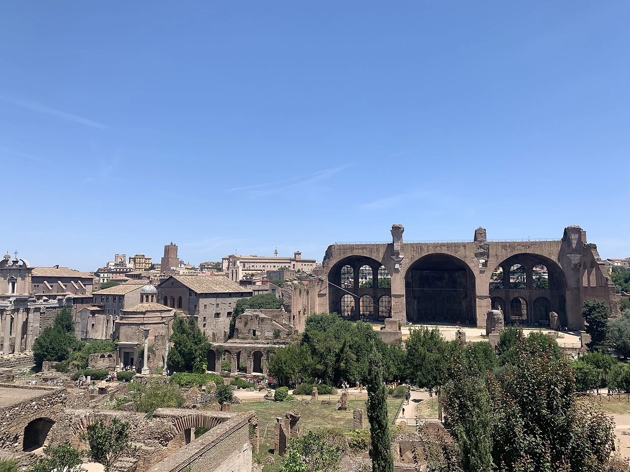 팔레르모 언덕 위에서 내려다본 포로로마노는 상상하기에 좀 더 좋았다. 신전, 집무실, 재판소, 상점 등 고대 로마 도시의 근간을 이루었을 주요 거점들이 한눈에 들어왔다. 콜로세움에서부터 따라온 아치모양이 다수 눈에 띄었다. 그새 친해졌다고 고대 로마 건축의 시그니처와도 같은 아치가 포로로마노 곳곳에 아로새겨져 있는 게 반가웠다.
