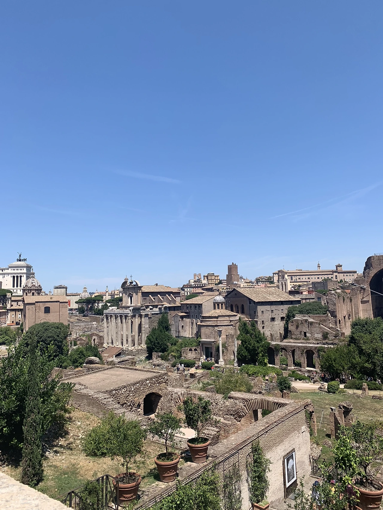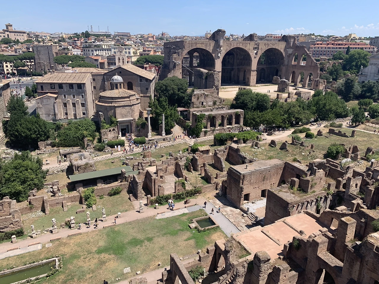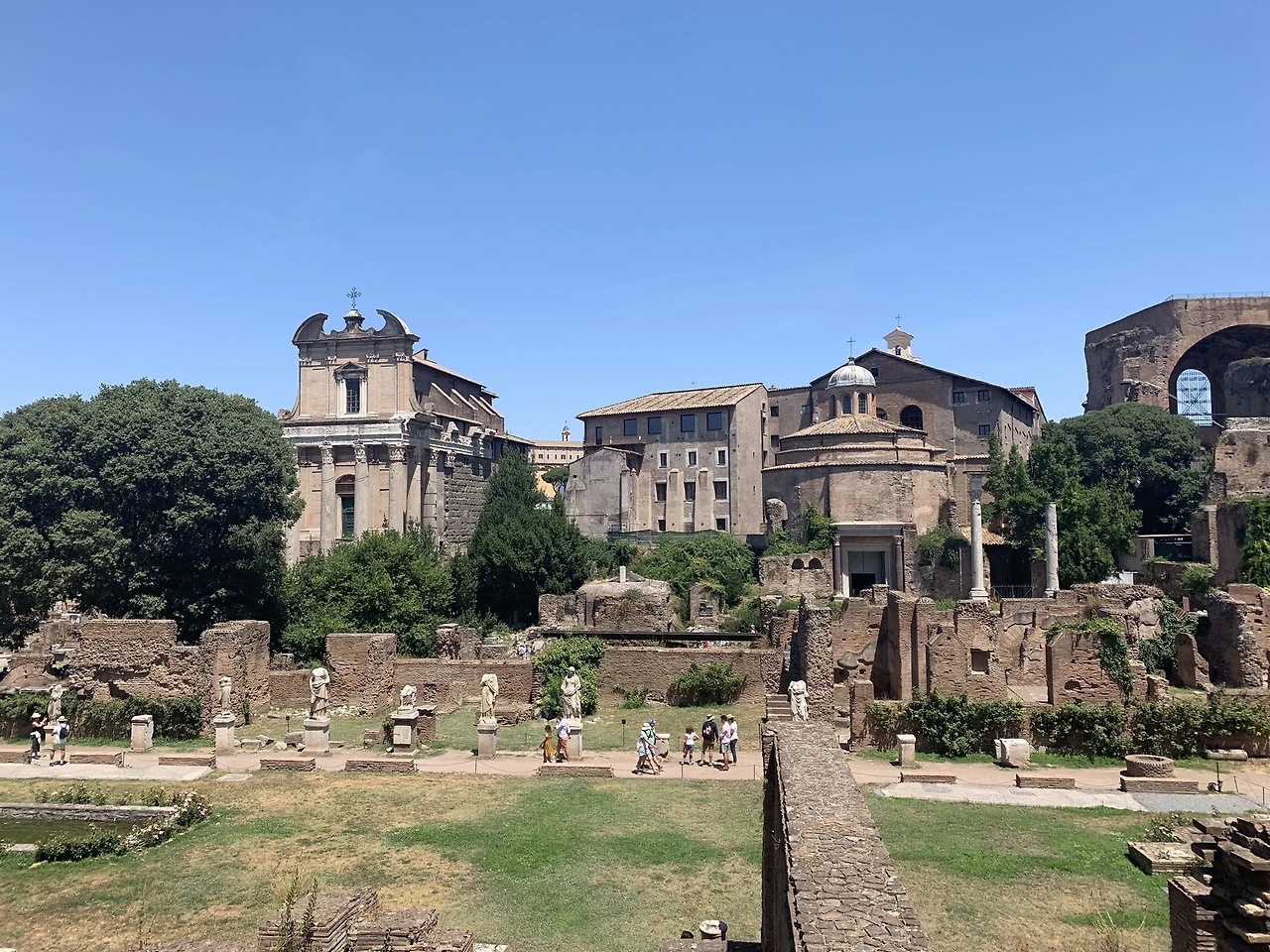 팔레르모 언덕 위에서 내려다본 포로로마노는 상상하기에 좀 더 좋았다. 신전, 집무실, 재판소, 상점 등 고대 로마 도시의 근간을 이루었을 주요 거점들이 한눈에 들어왔다. 콜로세움에서부터 따라온 아치모양이 다수 눈에 띄었다. 그새 친해졌다고 고대 로마 건축의 시그니처와도 같은 아치가 포로로마노 곳곳에 아로새겨져 있는 게 반가웠다.
