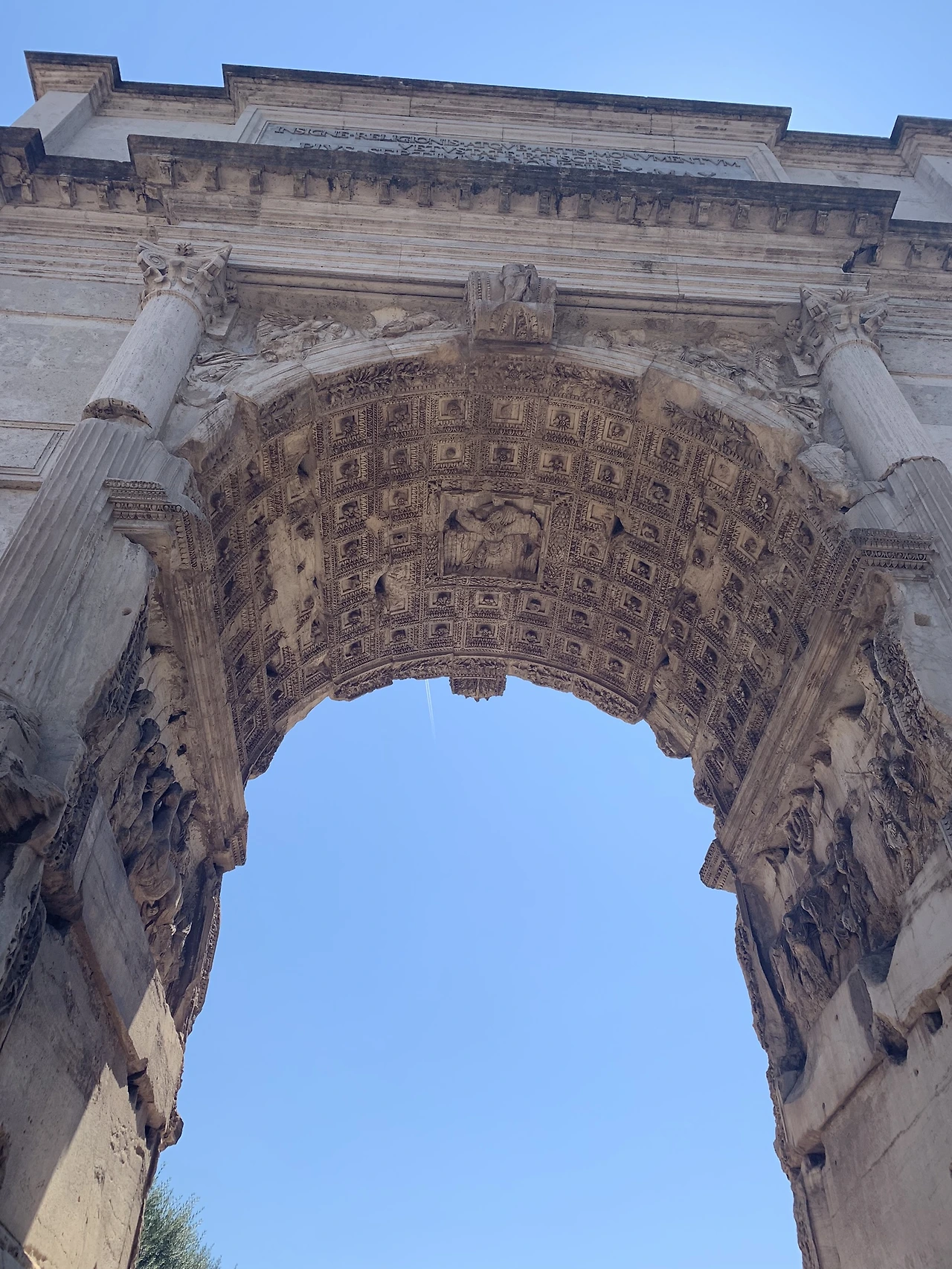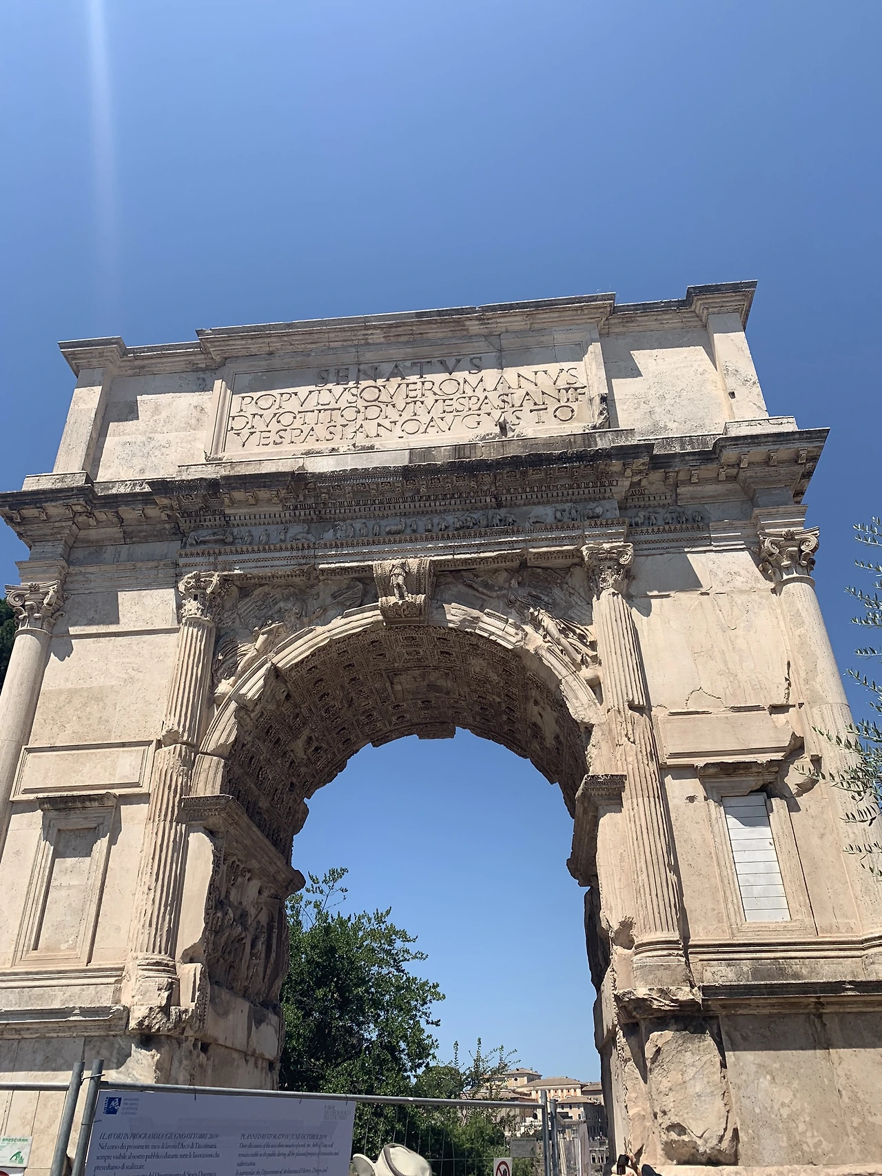 콜로세움에서 포로로마노로 이어지는 성스러운 길이란 뜻의 '비아 사크라'를 따라 올라가니 티투스 개선문이 나왔다. 조각이 바로 어제 깎은 듯 선명하고 또렷했다. 전쟁에서 승리한 장군들이 개선 퍼레이드를 벌였던 거리라는데 그 당시 군중들의 환호소리가 육중한 개선문을 통과해 귀에 들리는 듯했다.