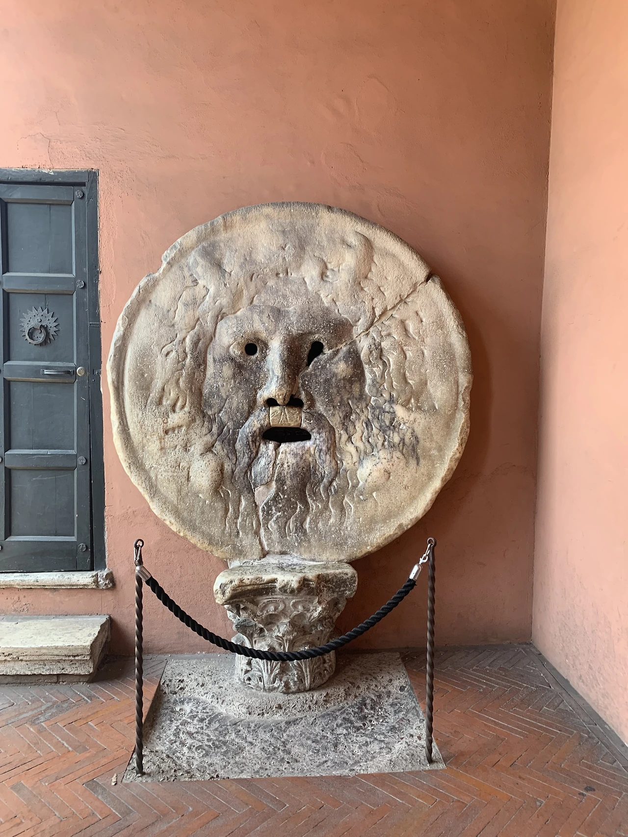 곱슬머리에 수염이 달린 사람이 그려진 이 거대한 돌은 고대 맨홀 뚜껑으로 사용되었을 거라는 설이 유력하다. 그렇다면 세상에서 제일 유명한 맨홀 뚜껑이 아닐까. 이름에 얽힌 전설은 더 흥미로운데, 입에 손을 넣으면 거짓을 말하는 사람의 손은 물어버린다고 한다. 지금은 입에 손을 넣고 사진을 찍는 게 대표 포즈로 자리 잡았는데 다들 거짓말을 하지 않아서 당당한 걸까, 전설을 믿지 않아서 의연한 걸까.