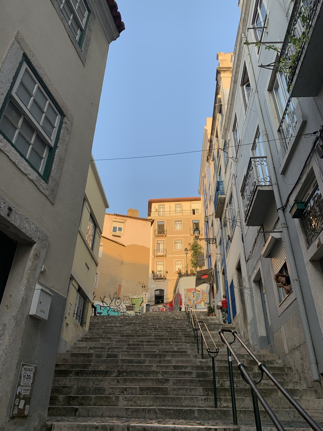 저녁을 먹고 나니 하루의 마감을 앞두고 매일 의식처럼 치르는 마지막 일정만이 남았다. 리스본 전경을 마주할 수 있는 전망대 '미라도루 다 그라사'로 올라가는 길. 트램을 타고 갈 수도 있었지만 일몰까지 시간이 별로 남지 않아서 도보길을 택했다. 15분 남짓의 가까운 거리지만 처음부터 끝까지 급경사 길이라 만만치 않았다.