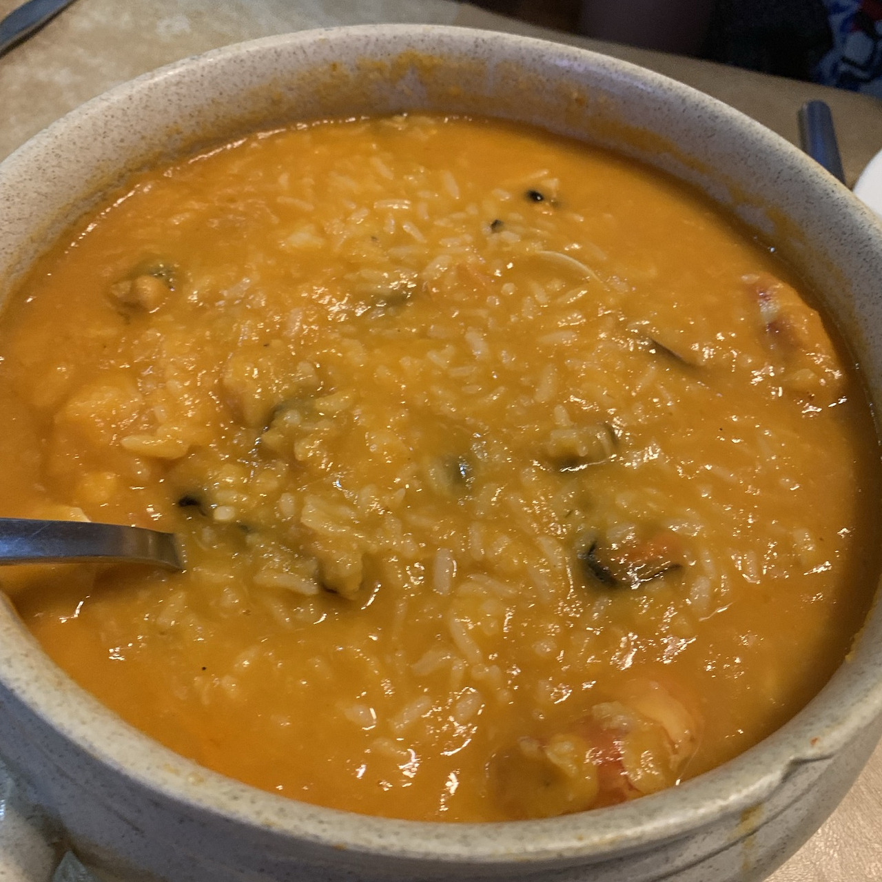 리스본에 왔으면 꼭 먹어봐야 한다는 해물밥은, 해물 육수에 쌀을 불려 넣고 거기에 토마토와 파프리카 가루, 갖은 야채와 새우, 홍합 등의 해산물을 듬뿍 넣고 푹 끓여낸 자박한 죽이었다. 하지만 친근한 비주얼에서 이미 알 수 있듯이 충분히 예상 가능한 맛이었다. 한 입 먹자, 바다향이 코끝에 스치는 싱거운 해물탕 맛이 느껴졌다. 기대가 커서 그랬을까, 한국에서 보기 어려운 특색 있는 해산물이 들어가거나 조금 더 특별한 맛이었어도 좋았을 것 같은데, 아쉬움이 컸다. 오히려 칼칼하고 자기 색깔이 뚜렷한 한국식 어죽이 더 매력적일 것 같다는 생각이 들었다.