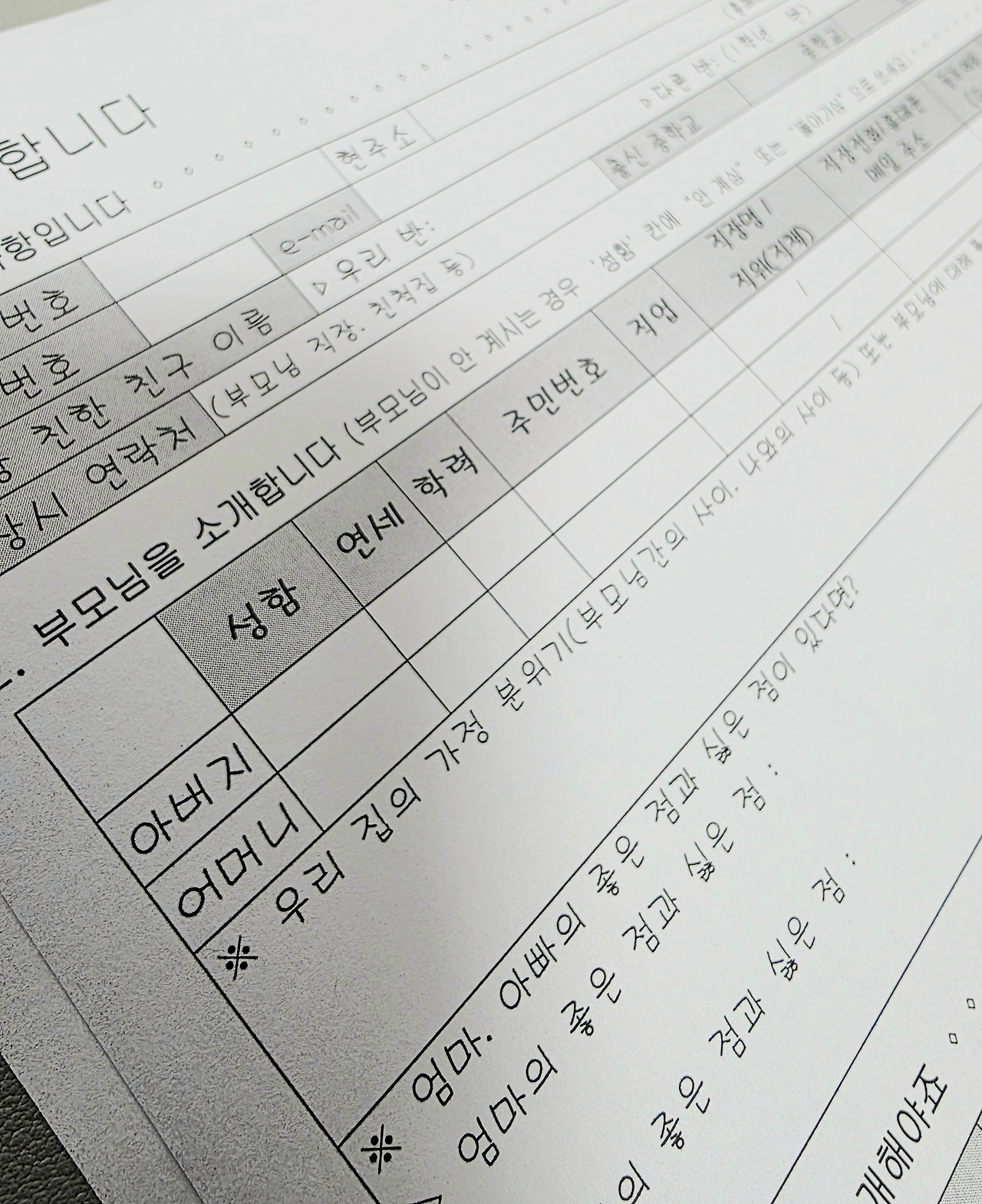 그중 나를 가장 멈칫하게 만들 서류... <가정환경조사서>
