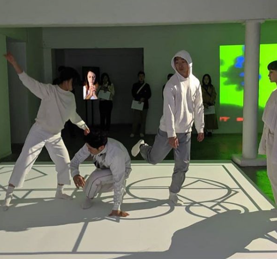 주목해야할 것은 퍼포먼스들의 몸이 무대 위에서 결코 닿지 않아야 한다는 규칙입니다. 퍼포머는 물구나무를 서고 앞뒤로 구르는 등 계속해서 격렬한 몸짓이 생성되고 소멸되는 중에도 긴장감을 잃지 않고, 서로의 몸을 통과하고 비스듬히 지나가면서 새로운 몸짓을 만들어냅니다. 비하인드 스토리를 덧붙이자면, 원래 작가는 작업 구상단계에서 2021년, 그렇게나 이슈가 되었던 <오징어게임>에서 아이디어를 얻었다고 하네요. 서로를 선 밖으로 밀쳐내려는 몸짓들이 땅에 그려진 선 위로 제한되며 서로 대치되던 상황은 작가의 작업에서 반대로 서로의 몸을 닿지 않음으로서 생기는 긴장감으로 전환되었습니다.