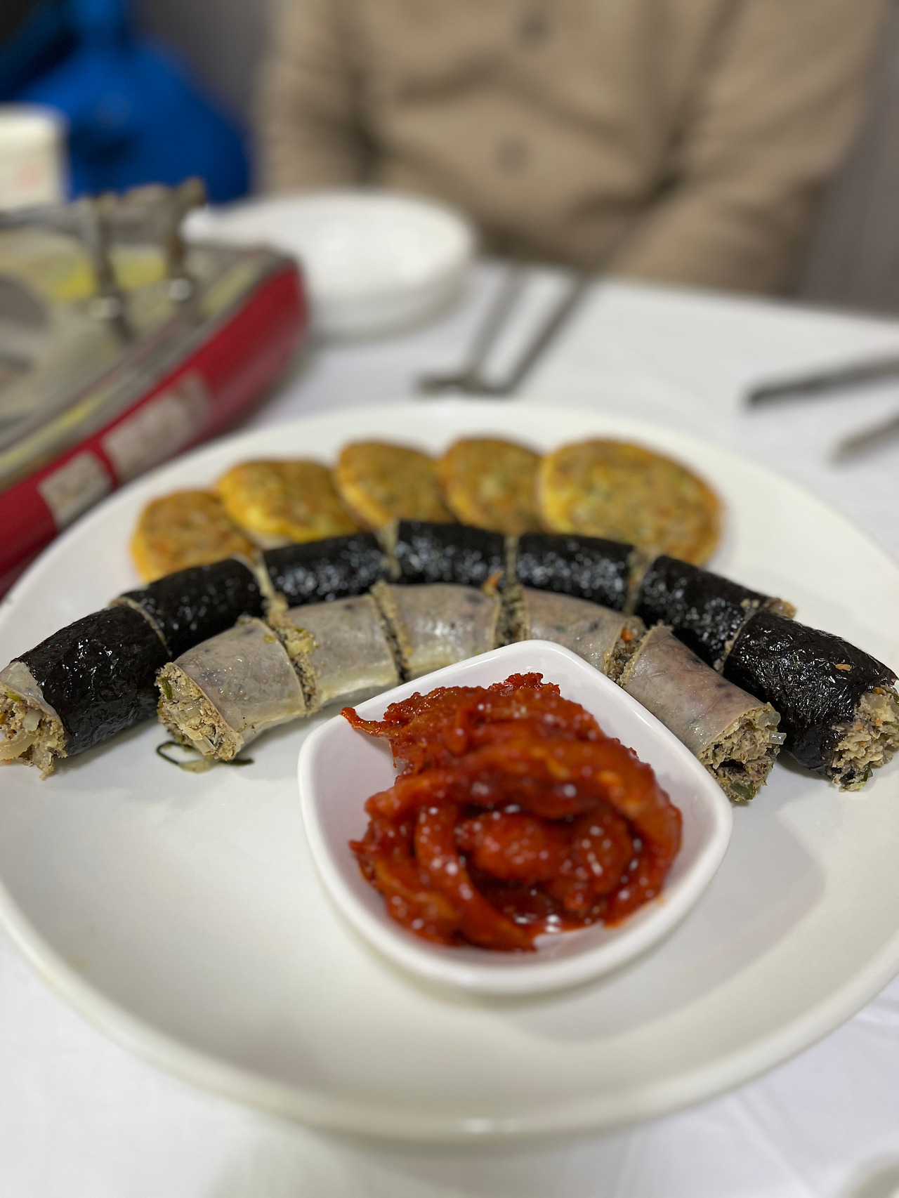 속초중앙시장에서 아바이 순대와 오징어순대를 먹었다. 센스 있게 소스가 세 종류나 나왔군. 간장, 쌈장, 새우젓. 순대전골까지 야무지게 먹었다.