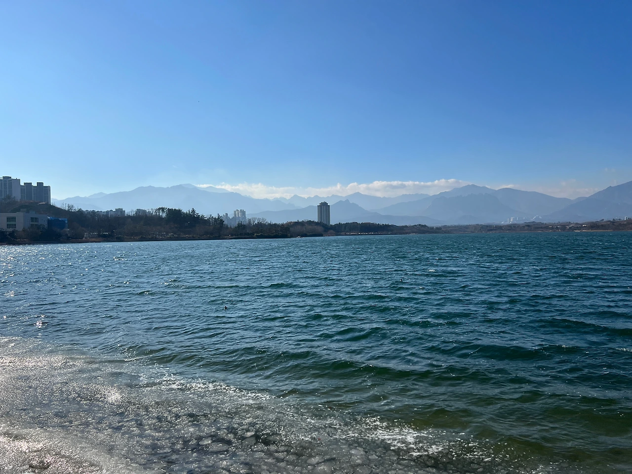 속초는 없는 게 없다. 산도 있고, 바다도 있고, 호수도 있다. 그래서 맛있는 것도 많은 걸까?? 영랑호에는 헤엄치는 오리도 있고, 얼음도 있다. 너무 커서 그냥 바다 같네. 운동하기 정말 멋진 풍경이야. 하지만 난 게을러서 절대 안 할게 뻔하다.