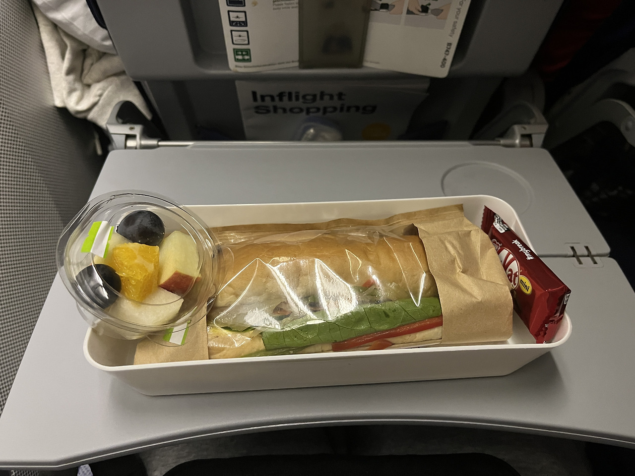 토끼잠을 자고, 10시간쯤 지나면 샌드위치를 주는데 배고픈 상태에서는 먹으면 뭐든 안 맛있으리! 깔끔히 다 먹고 착륙을 기다렸다.