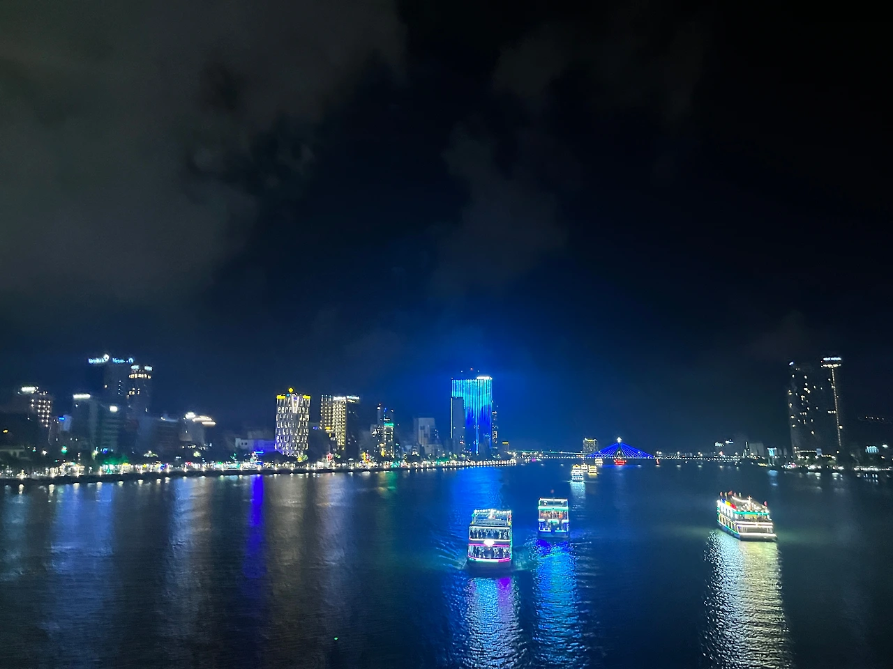 매주 일요일, 밤 9시 다낭 시내의 용다리에서는 불쇼가 열린다. 운이 좋게도 첫날이 일요일이어서 큰맘 먹고 엄마와 용다리 구경에 나섰다. 밤의 다낭은 제법 다른 느낌이다. 한강을 따라 지나가는 크루즈들, 빌딩의 불빛들이 이곳이 관광지임을 더욱 상기시킨다.