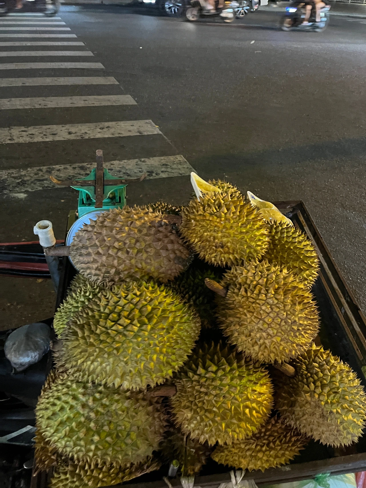 숙소 가다가 본 두리안 더미. 냄새가 그렇게 심하진 않은데? 안 먹어본 것이 아쉬웠다.