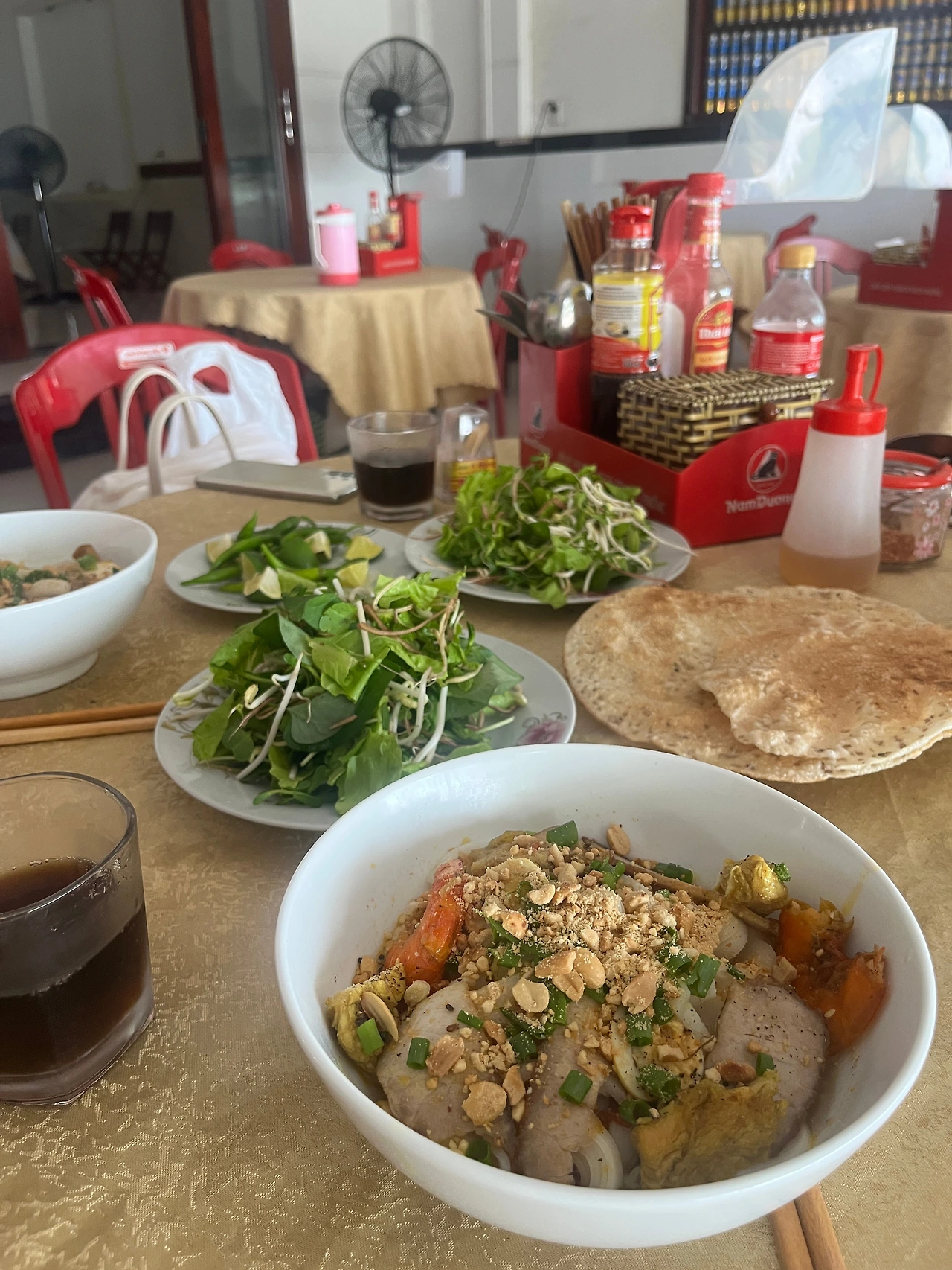 미꽝은 우리나라 음식으로 치면 비빔국수이다. 재료에 따라 종류도 천차만별인데 돼지고기, 새우 등이 메인이다. 여기에 각가지 채소(민트, 고수, 숙주)와 라임을 뿌려 먹으면 되는데 확실히 이전에 먹었던 음식들보다 허브채소들의 향이 강해서 먹기 힘들었다. 진정한 베트남의 맛. 남기긴 했지만 의미 있는 도전이었다고 생각한다. (로컬식당에서는 외국인이 가격 호갱을 당할 수 있으므로 눈에 불을 켜고 경계해야 한다.)