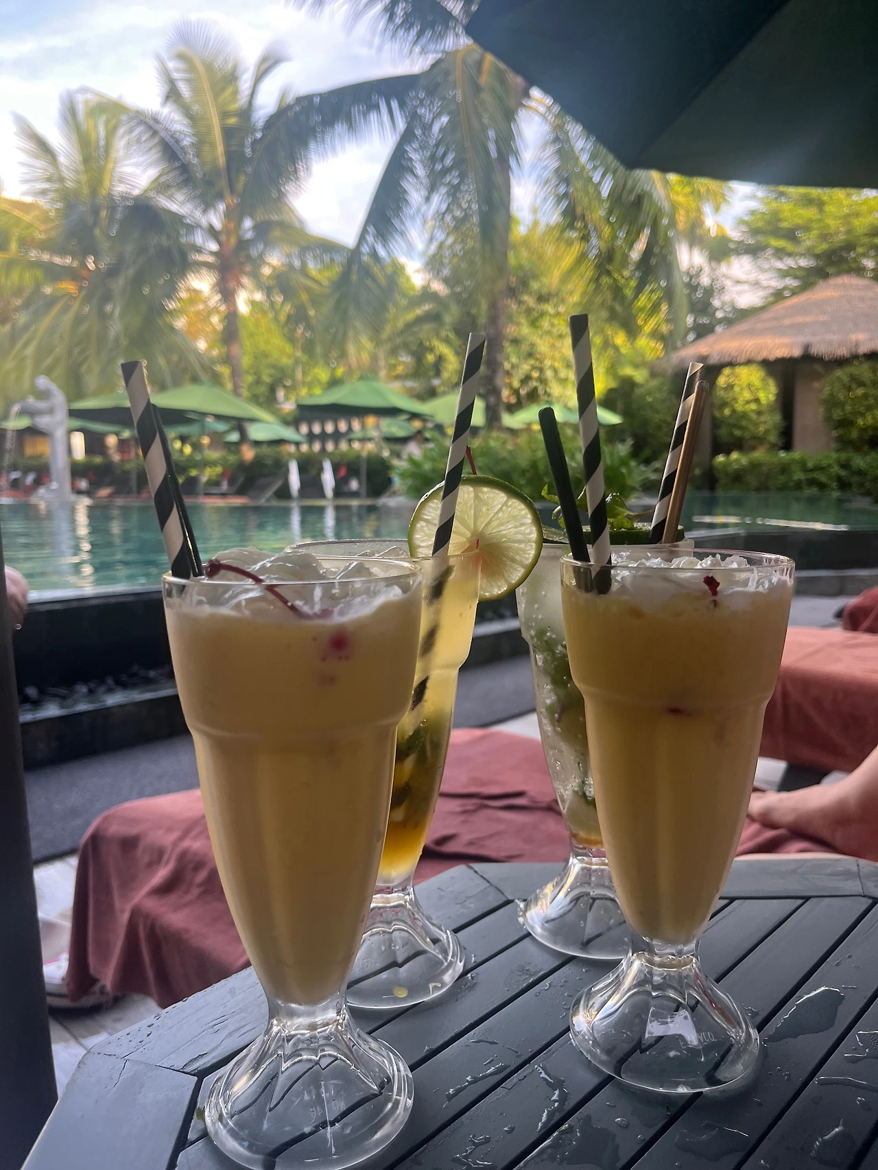 아빠와 한창 물장구치다 시킨 음료수. 사람은 3명인데 음료는 4잔이다...?