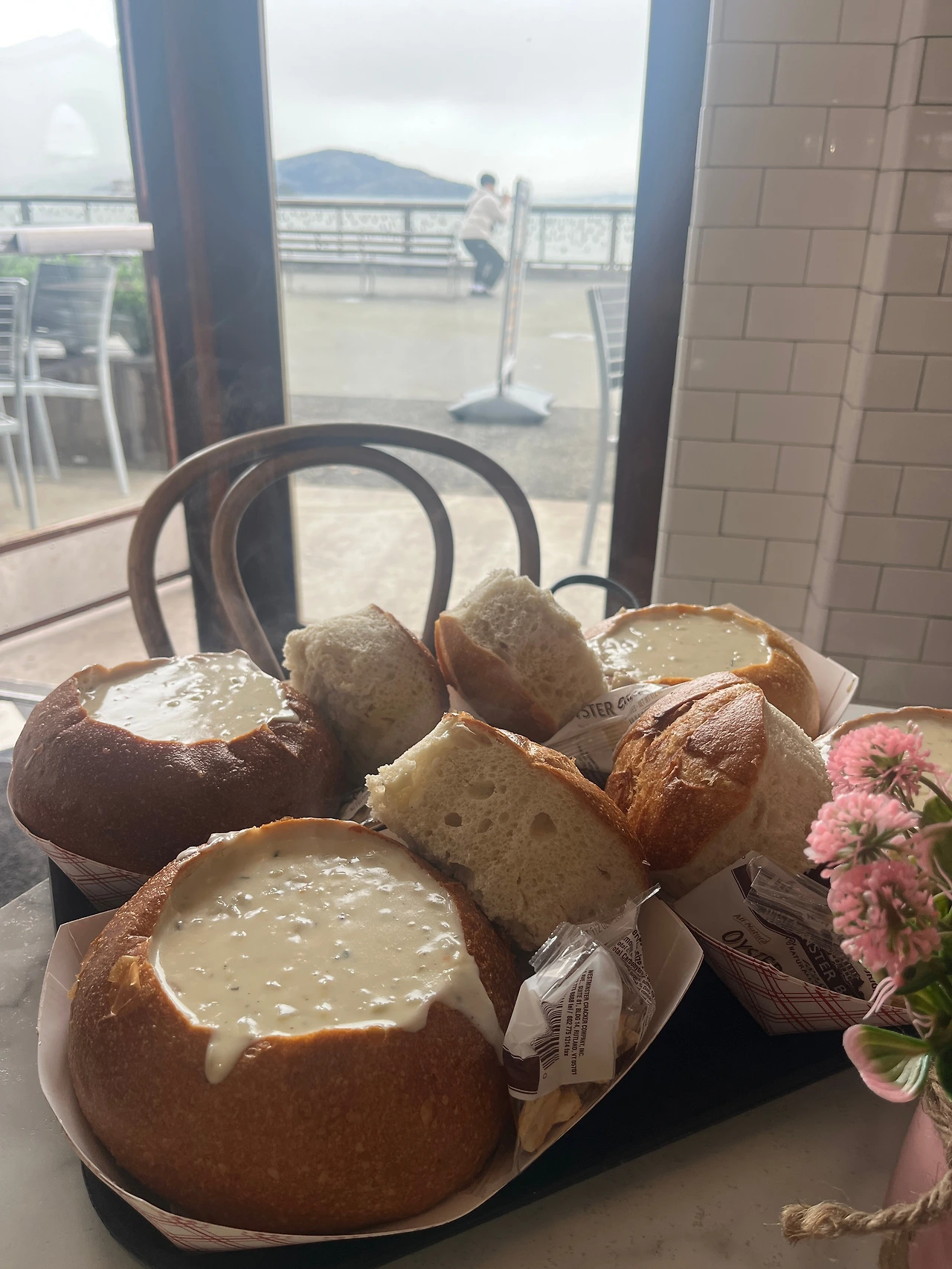 처음으로 방문한 곳은 글램 차우더를 파는 레스토랑이었다. 글램 차우더는 조개 수프 요리로 샌프란시스코에서는 사우어도우 브레드 속을 파서 먹는다. 기대했던 것과 달리 훨씬 더 짜고 양이 많다. 너무 많았던 탓에 나조차도 음식을 남길 수밖에 없었다. 미국의 스케일에 벌써부터 놀라는 중...