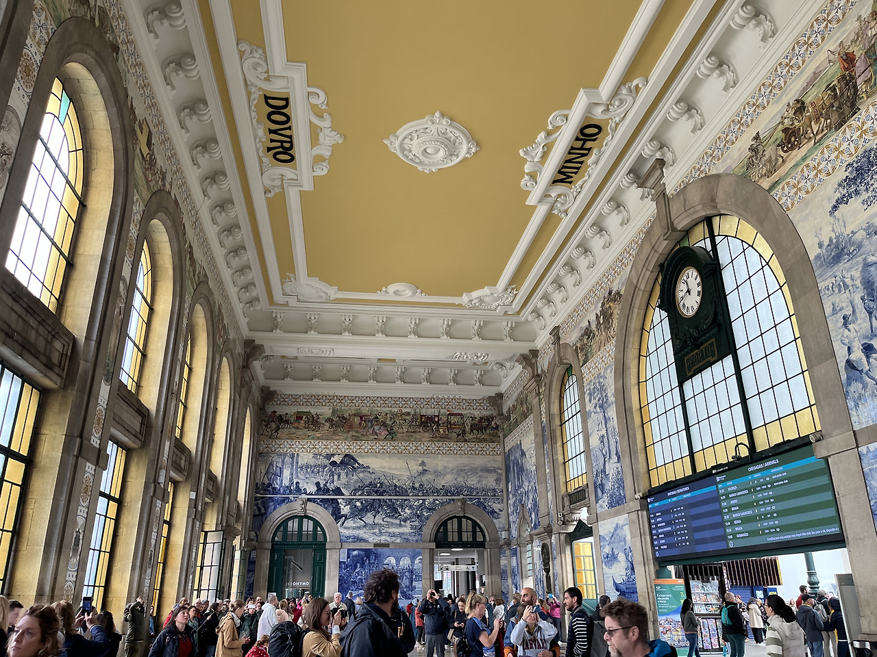 요상한 날씨를 뚫고 상 벤투 역에 도착했다. 세상에서 가장 예쁜 기차역이라고 불리는 이 기차역은 포르투갈의 건국 역사를 담은 2만여 개의 파란색 타일, 아줄레주로 덮여있다. 기차를 타기 위한 승객보다 관광객이 많은 것 같았다. 그만큼 역사적으로도 예술적으로도 포르투갈의 특색을 잘 보여줄 수 있는 장소이다.