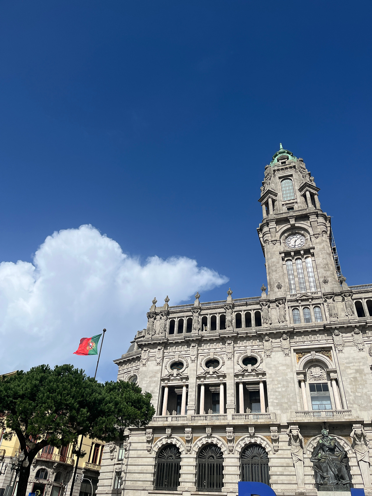 먹다 보니 어느새 갠 하늘. 포르투 글자 하나 찾으러 플로레스 거리를 지나 시청까지 왔는데 마침 날씨가 좋아져서 전경이 참 예뻤다.