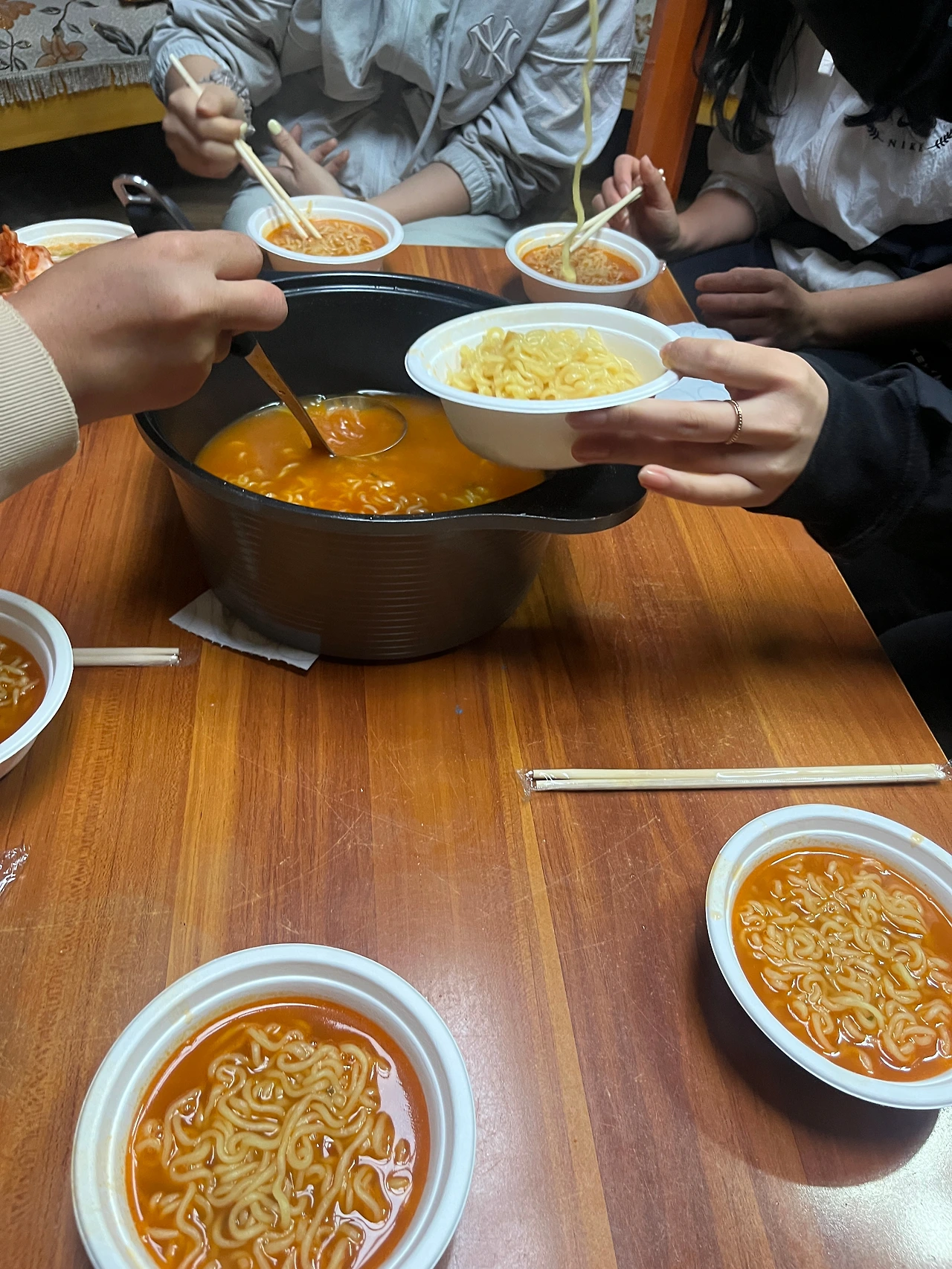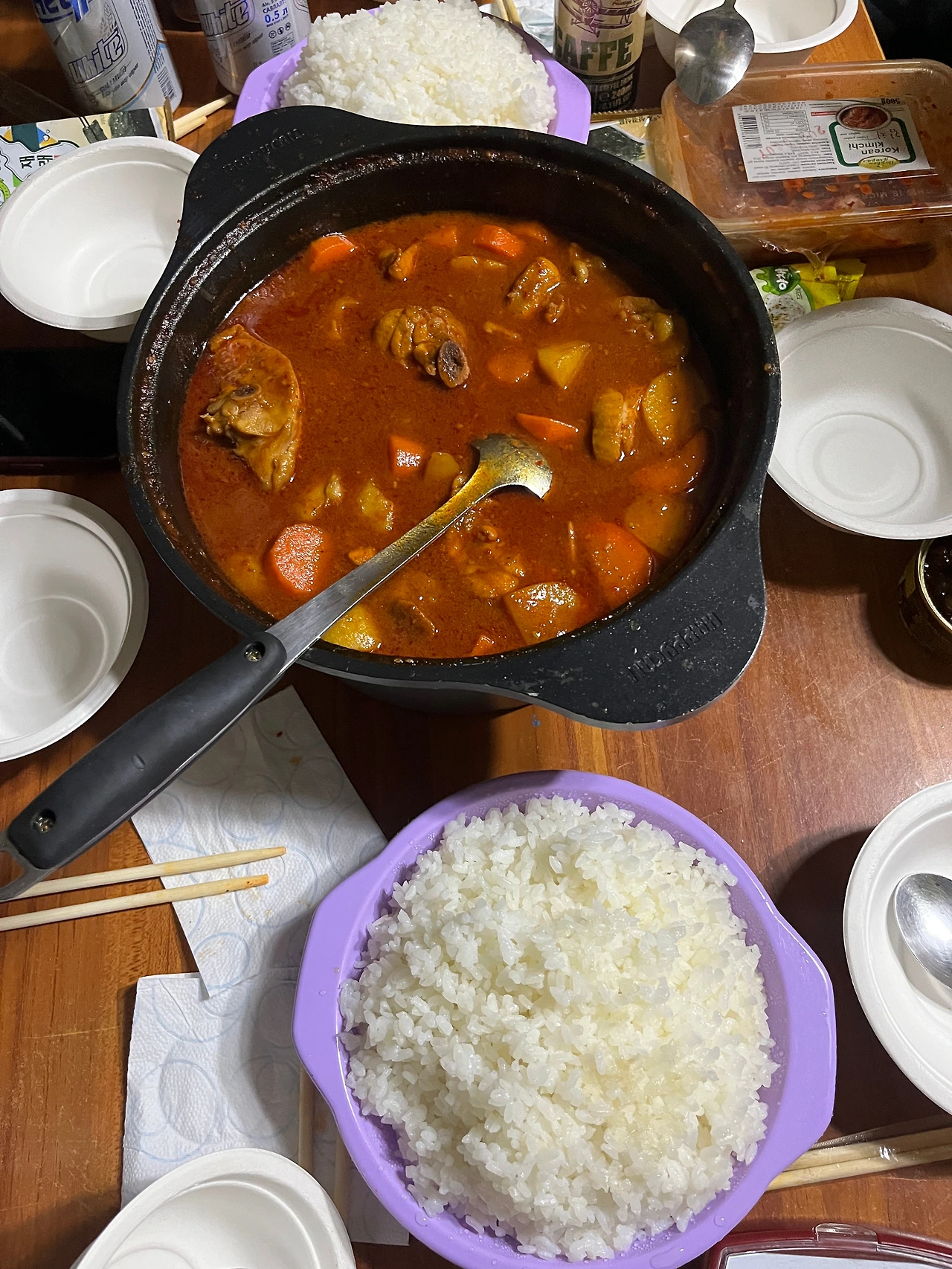 조난당하느라 쫄쫄 굶어서 7시가 넘어서 먹은 점심(라면)과 2시간 있다 먹은 저녁(닭볶음탕). 어떻게 먹나 싶었는데 폭식했다. 뜻하지 않은 홍수 이슈로 오후 사막 일정(낙타 타기)이 취소되어서 너무 아쉬웠지만, 그래도 낼 아침에 새벽 일찍 사막을 오르기로 결정하고, 얼른 잠을 청하였다. 그런데 고난은 여기서 끝이 아니었으니...!