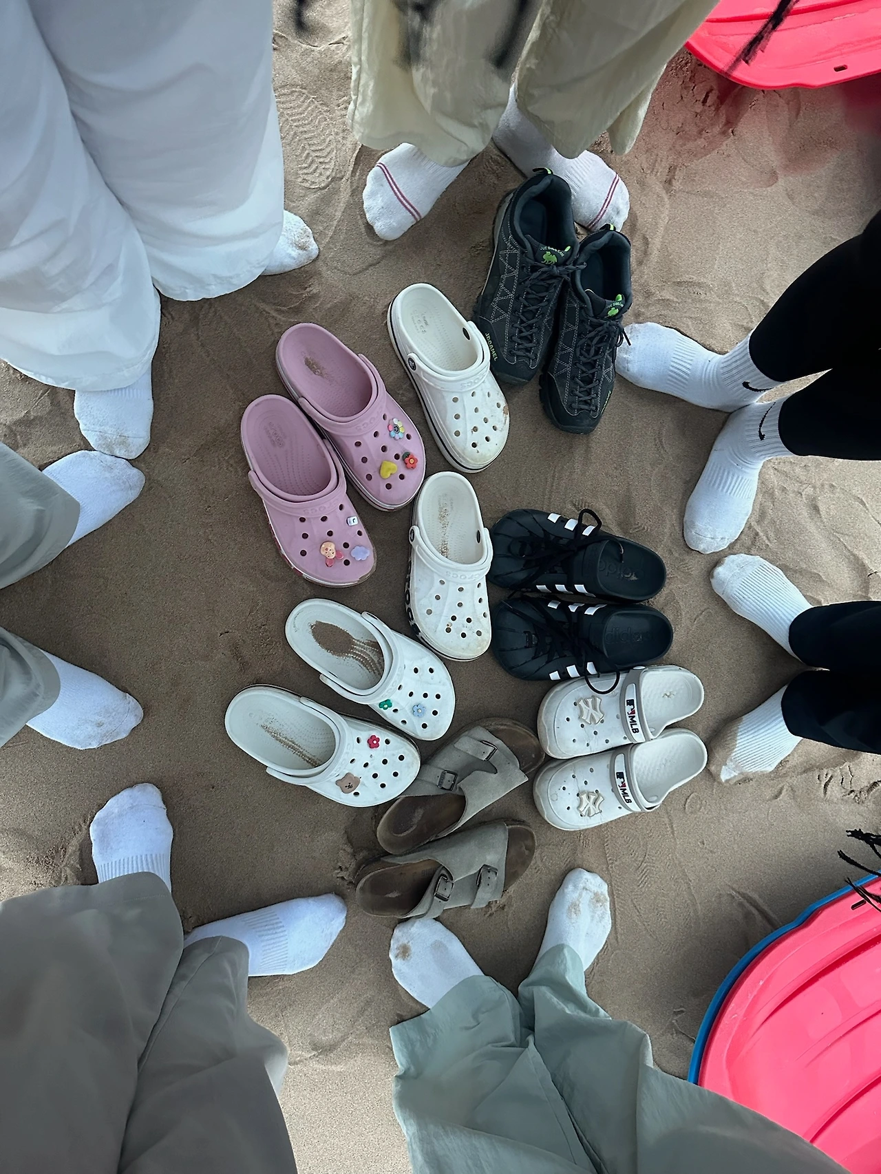 신발을 신고 오르면 모래가 계속 차기도 하고, 미끄러질 수 있어서 맨발로 오르기 시작했다.(모래가 제법 거칠기 때문에 양말은 필수 착용이다.)