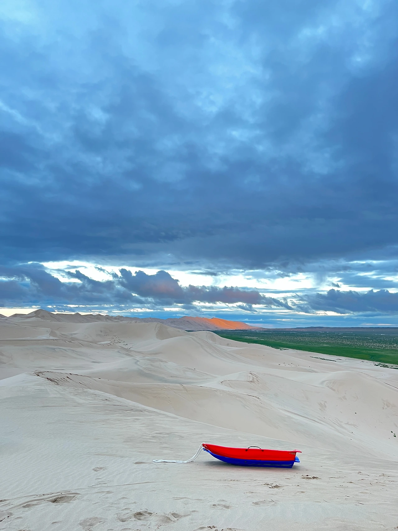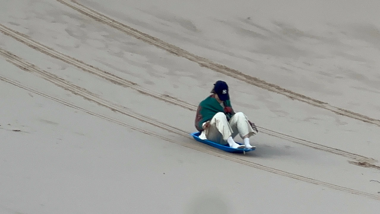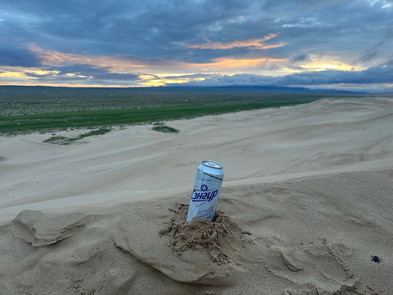 등산할 때 올라갈 때에 비해 내려갈 때는 한순간이라지만, 썰매를 타면 더 빠르게 도착할 수 있다. 하지만, 아쉽게도 전날 홍수의 영향 탓에 모래가 딱딱하게 굳어 썰매가 계속 멈췄다. 여행 오기 전에 릴스에서 봤던 속도와 넘어져서도 폭신해 보이는 모래는 없었다. 그럼에도 서로 영상을 찍어주며, 깔깔 웃는 우리. 고비에 간다면 꼭 경험해봐야 하는 액티비티다.