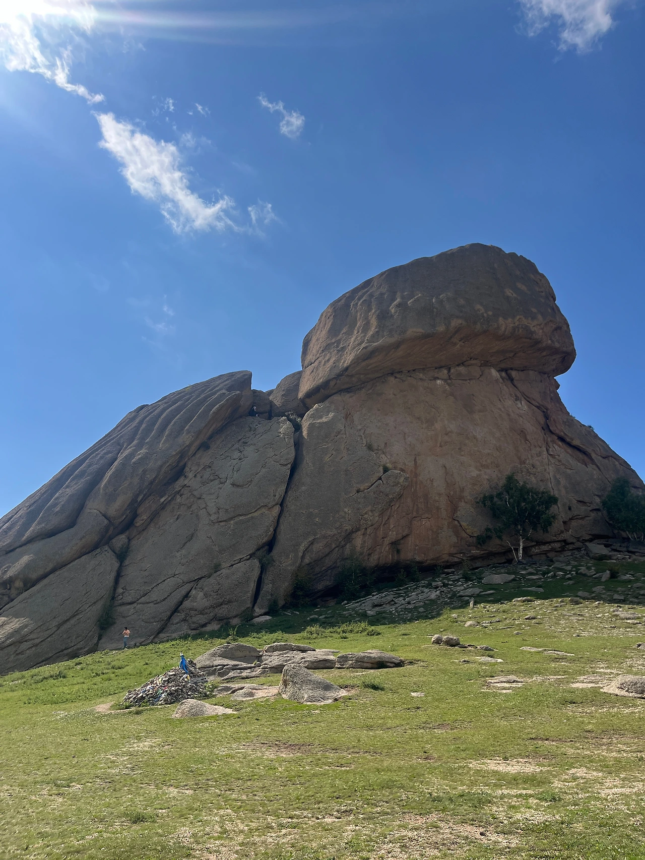 테를지 당일치기 두 번째 장소는 '거북바위'이다. 딱 봐도 거북이 같이 않은가? 몽골 사람들에게 거북바위는 학창 시절 수학여행 개념으로 꼭 한 번쯤 오는 곳이라고 한다. 바위 뒷면으로 가면 전망으로 향하는 험한 돌길이 있다. 인위적으로 다듬어지지 않았기 때문에 안전에 유의해서 올라가자.