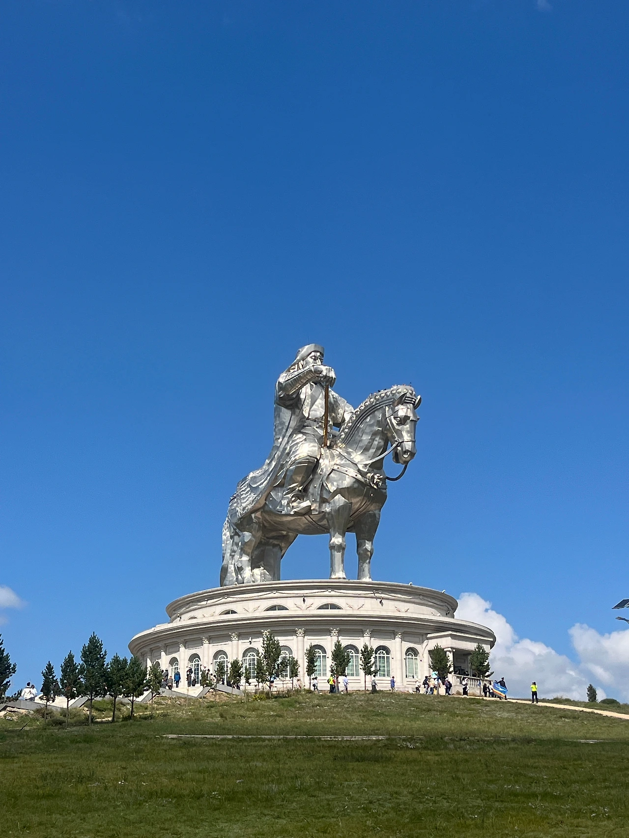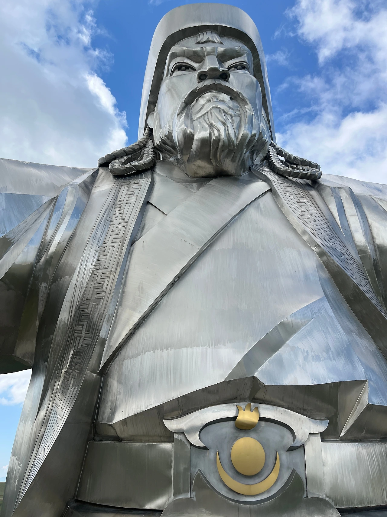 전망은 사실 그렇게 대단한 풍경은 아니었다. 한국에서는, 특히 도시에서는 보기 힘든 넓은 논밭 뷰를 볼 수 있다 정도. 오히려 반대편에서 압도적인 크기로 우리를 내려다보는 칭기즈칸의 모습이 더 인상적이었는데 그가 차고 있는 벨트에 담겨있는 몽골 국기의 일부 모양을 보니 다시금 그에 대한 몽골인들의 존경심과 애정을 느낄 수 있었다.