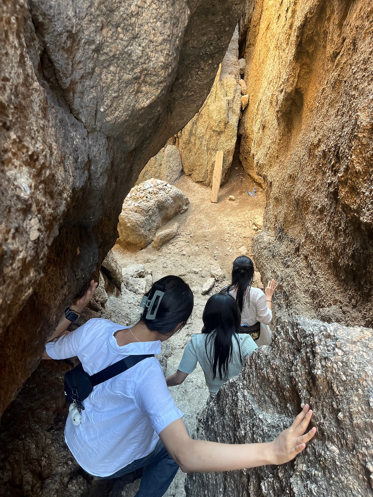 거북바위 안쪽으로 더 들어가면, 내부에 관광객들이 많이 다녀간 흔적이 보인다. 거기서 안쪽으로 들어가게 되면 돌과 돌사이의 아주 작은 틈이 있다. 사람이 들어갈 수도 있다는 운전기사님의 말씀에 감히 도전해 봤다가 큰코다침. 생각보다 엄청 좁고, (마른 사람들만 입장 가능한 수준) 발을 내딛는 땅이 멀었다. 나중에 올라오는 건 더 힘들다.(누군가 위에서 잡아줘야 함)