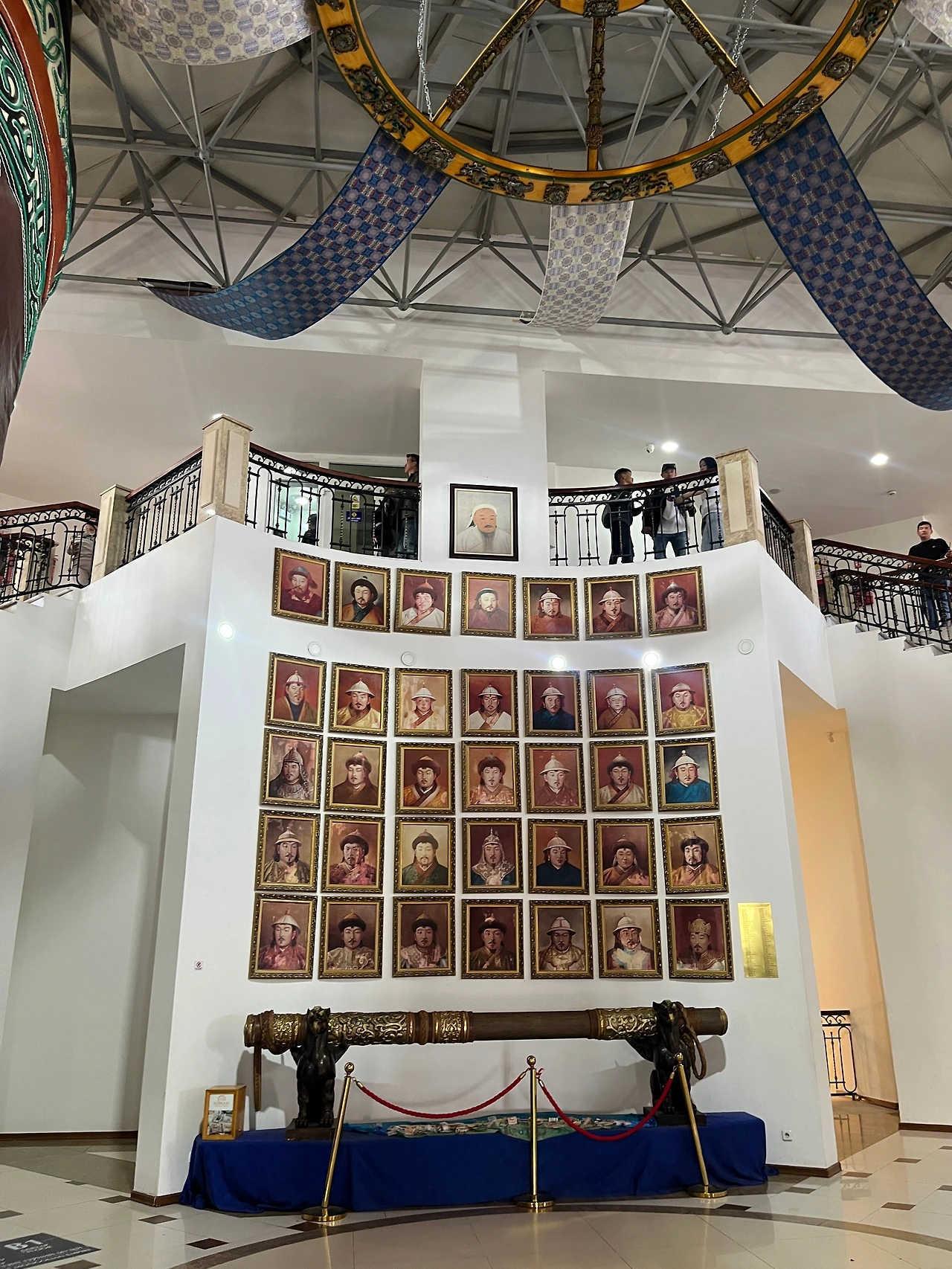 입장료를 내고 들어간 박물관 내부에는 몽골의 문화가 가득 담겨있었다. 칭기즈칸을 비롯한 칸(왕)들의 초상화가 걸려있었는데 맨 위에 걸려있는 칭기즈칸의 위치에서 그의 위상을 느낄 수 있었다. 우리나라로 치면 세종대왕 같은 느낌일까?