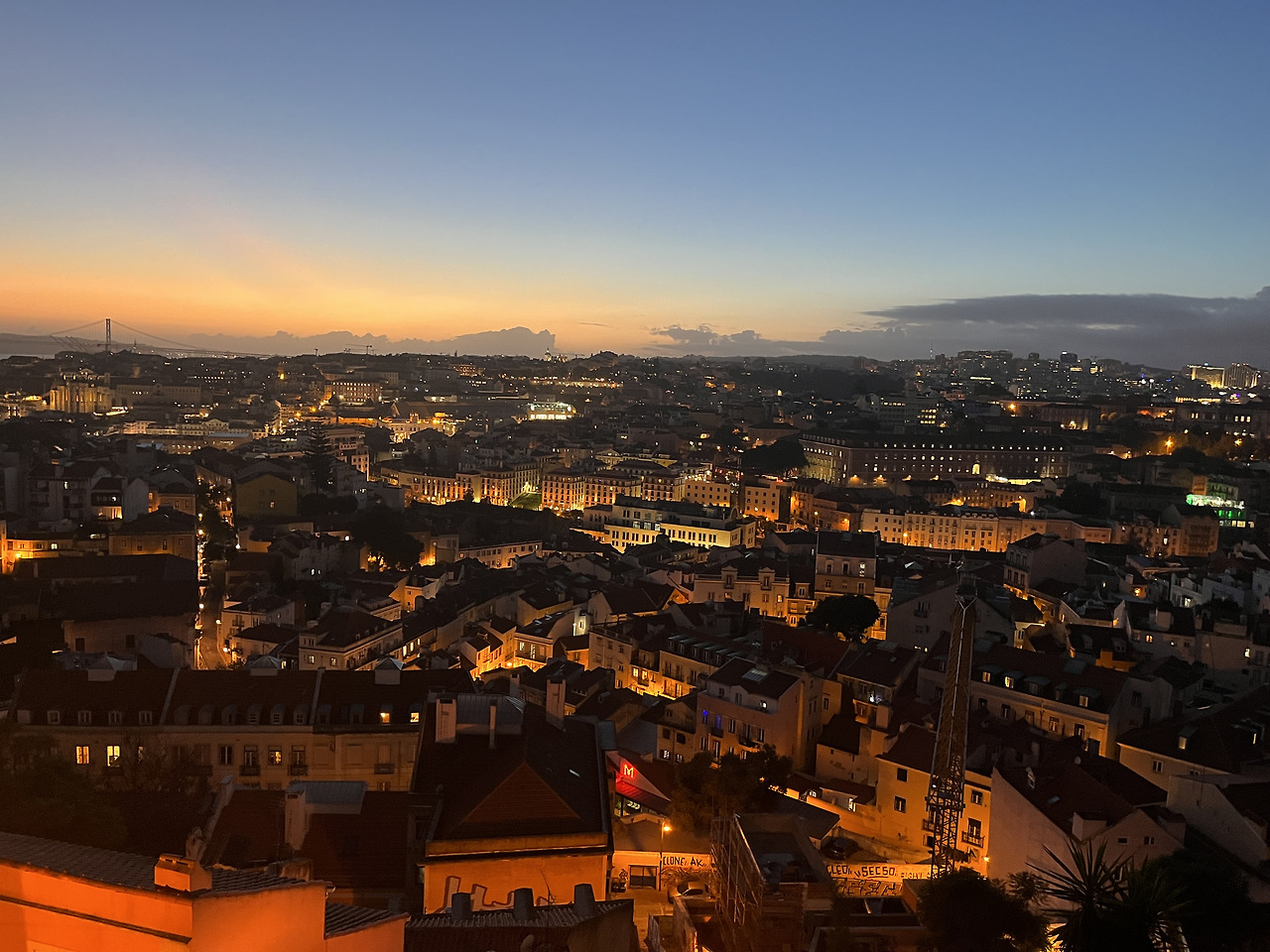 20분 정도 열심히 올랐더니 전망대 카페와 함께 리스본 시내를 조망할 수 있었다. 때마침 하늘에는 해가 걸터앉아 일몰이 펼쳐졌다. 적당히 선선히 불어오는 바람과 이국적인 풍경, 배경이 되어주는 사람들의 대화 소리. 이 모든 게 글을 쓰는 이 순간에도 느껴지는 듯하다.