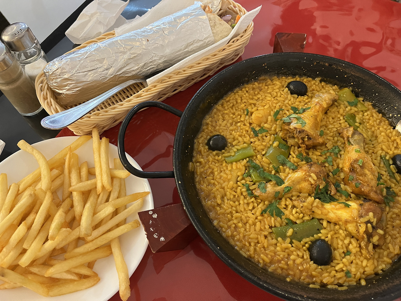 하루 종일 휴고가 준 빵과 주스 밖에 먹지 못한 탓에 아사 직전인 Y와 나는 바로 점심 겸 저녁을 먹으로 시내를 나섰다. 쌀이 너무도 먹고 싶었던 우리는 빠에야 맛집을 찾아왔는데 케밥도 같이 파는 중동 느낌의 음식점이었다. 케밥과 치킨 빠에야를 시켰는데 두 메뉴다 맛있었다. 사실 배고파서 뭔들 안 맛있겠냐만. 여행하면서 현지 음식에 잘 적응하는 편이지만, 그래도 밥은 한 번씩 생각이 났다. 한국인은 밥심이라는 말이 괜히 나온 소리가 아닌가 보다.