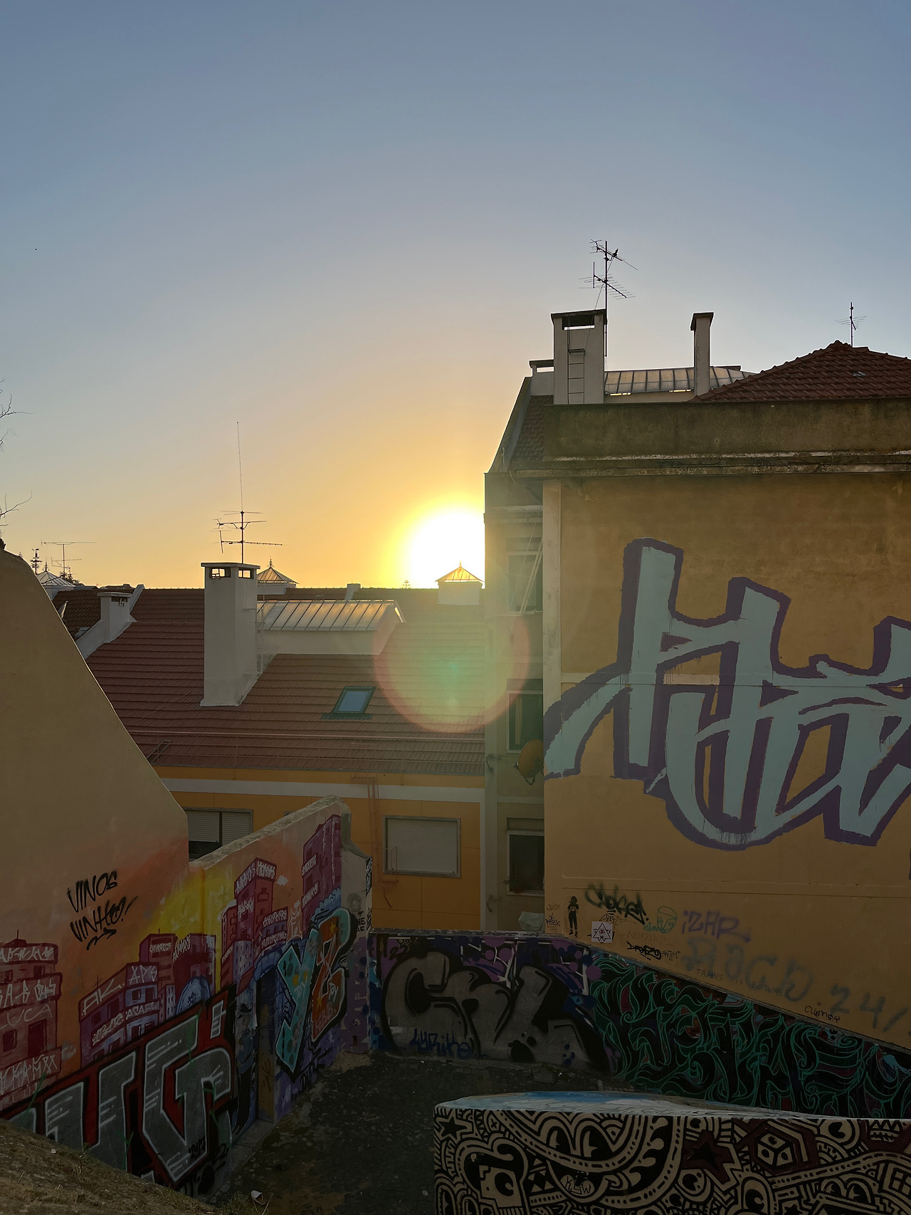 일몰 시간에 맞추어 올라가서인지 한 번씩 힘들 때마다 멈춰서 바라본 풍경은 전망대의 풍경을 더 기대되게 만들었다. 리스본 역시 포르투와 마찬가지로 그라피티가 곳곳에 많았는데 주로 이주 노동자나 외지인들이 자신들의 감정이나 가치관을 그림과 글로 담아내고 있다.