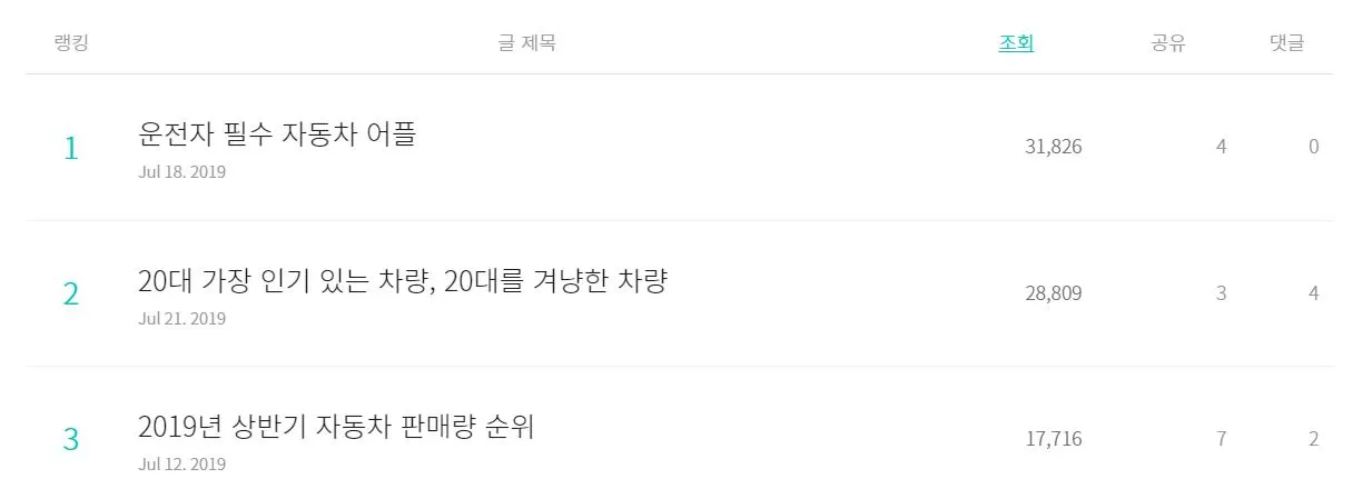 콘텐츠를 업로드했고 7월 중 3개의 콘텐츠가 포털사이드 다음의 메인에