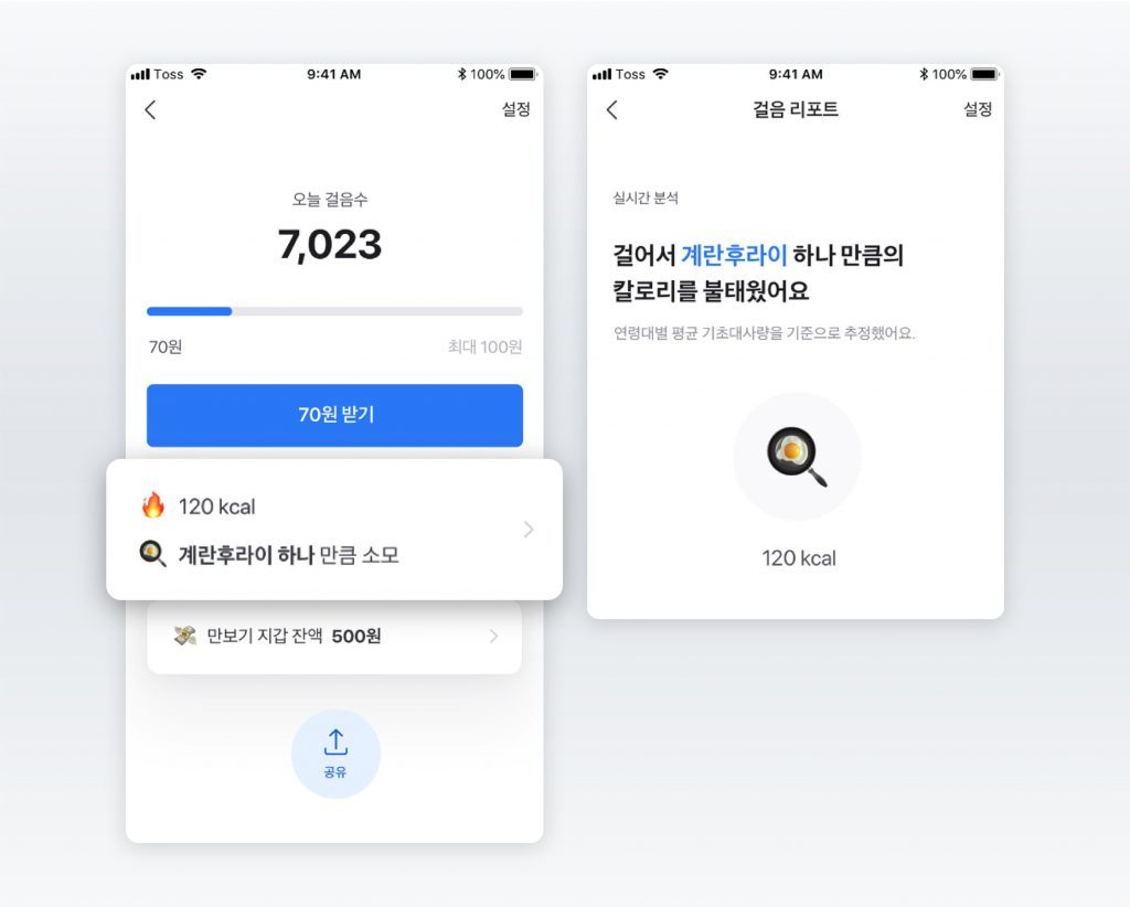 최근에는 토스 만보기를 런칭했습니다. 이것은 사용자의 단말기에서 측정된 걸음 수 기준으로
