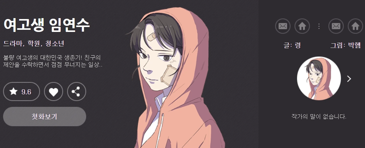 이 글은 2018-19년쯤 <여고생 임연수>를 봤던 기억(과 남겼던 감상)에 의존해 썼다. 요즘 웹툰에선 다방면에서 활약하는 여자들이 많고, 이 웹툰보다 신선하고 세련되게 청소년을 이야기하는 웹툰도 많다. 그래도 나는 왠지 가장 먼저 현수를 얘기하고 싶었다. 현수가 마음에 들었던 그때의 감상으로 현수를 소개하고 싶었다.