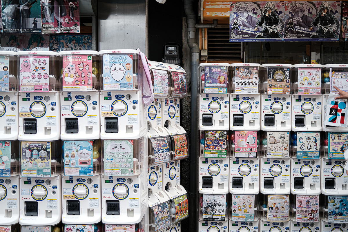 나는 '가챠', 한국에서는 '뽑기'라고 불리는 이 존재의 본질을 이렇게 생각한다. 가챠에서 뽑을 수 있는 것들은 대부분 아주 작고 귀여우며 위트 있는 소품들이다. 애니메이션이나 캐릭터 혹은 유명 연예인과 관련된 아이템들까지 그 종류와 범위가 상상 이상으로 많고 넓다. 그리고 이렇게 많은 가챠가 모여있는 가게를 마주하게 되면 평소에 이런 아기자기한 소품에 관심도 없었던 나의 발걸음도 홀린 듯 가챠샵으로 향하게 된다. 일단 가게로 들어와서 여러 가챠들들 구경하다 보면, 실물을 보지 못해서인지 궁금한 마음이 점점 생기고, 그 와중에 더 매력적으로 느껴지는 아이템들이 눈에 보이기 시작하고, 원하는 아이템을 한 번에 뽑을 수 있을까?라는 기대감들이 점점 쌓이고 속도를 내며 기어코 주머니의 동전들을 투입구에 넣고 짧은 기도를 하며 가챠를 돌리게 된다. 그리고 가끔은 꼭 원하는 것을 뽑고 마리라는 의지를 가지고 몇 번이나 같은 가챠 앞에서 주머니의 동전을 모두 써버리기도 한다. 만약 이 가챠 속 소품들이 모두 진열되어 있었고 그 실물을 비교하며 원하는 것을 운에 맞기지 않고 구매할 수 있다면? 과연 이 소품들을 이렇게까지 내가 원하고 갖고 싶게 될까? 나는 '아마도 아닐 것이다'라는 마음속 결론을 내렸다. 그리고 이런 불확실해서 예측 가능하지 않다는 제한 조건이 이 가챠라는 것의 본질이지 않을까?라는 생각을 했다.