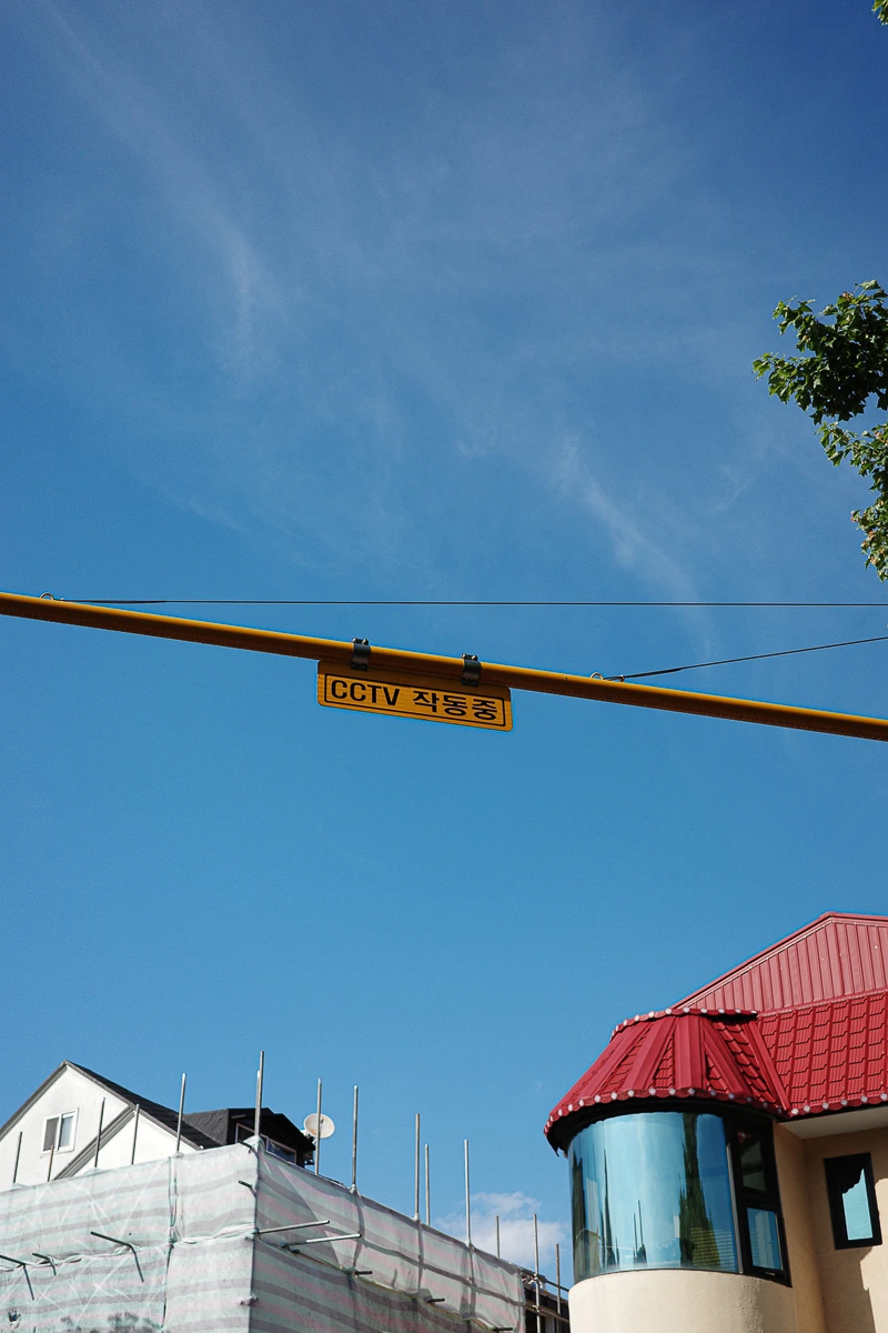 하늘의 파랑, 그와 대비되었던 지붕의 빨강, 그리고 비현실적으로 넓은 하늘을 가로지르던 기둥의 노랑