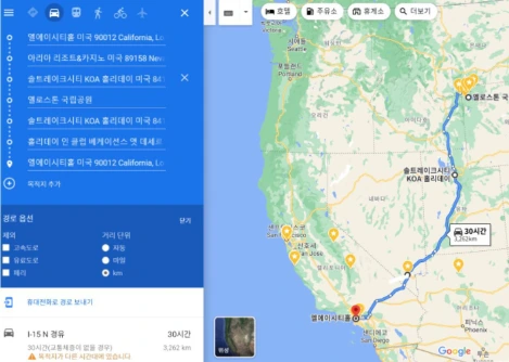 LA -라스베거스-솔트레이크-옐로우스톤-솔트레이크-라스베거스 -LA