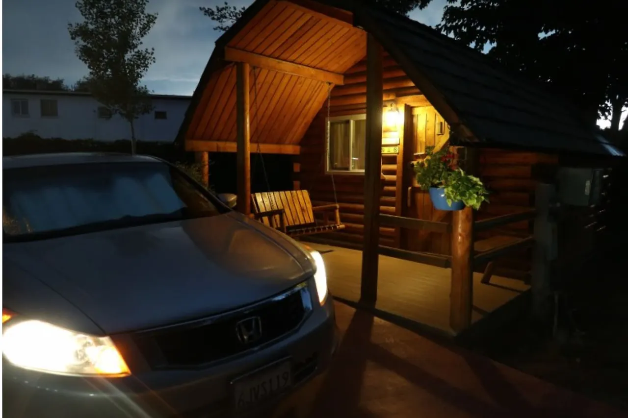 통나무 오두막집이 우릴 반겨줍니다.