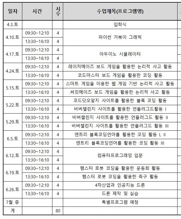 초등학교 4학년 딸아이가 국립대학교 영재원 소프트웨어 분야에 합격하여 4월부터 토요일마다 영재원 수업을 듣게 되었습니다. 토요일 오전 9시 30분 부터 오후 4시 10분까지 컴퓨터 공학과 교수님들이 아이들을 가르치십니다.