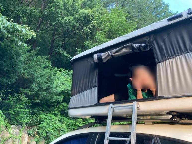 일단 모든 가족이 루프탑에서 자면 일어나지 못한다. 백화점에서 큰맘먹고 할부로 구입한 침대 타퍼에 견줄만큼 편안함이 느껴진다. 두께도 정확히 측정하진 않았지만 5cm 정도는 되는거 같다.