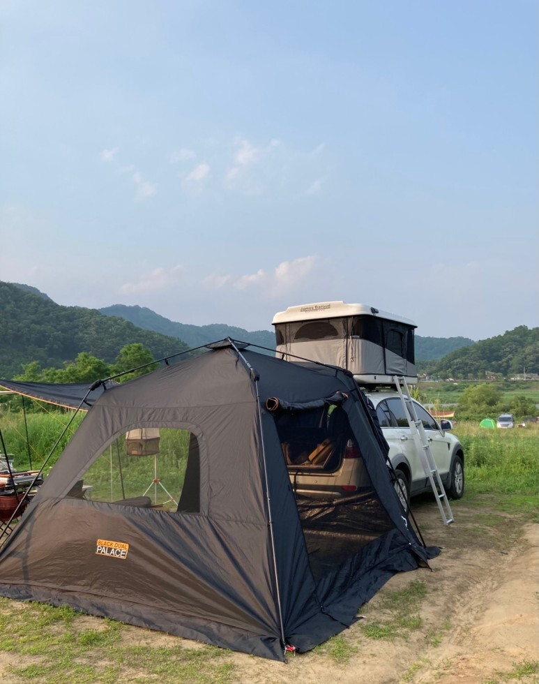 어떤 솜씨 좋은 분은 하드쉘 윗부분 옆면에 카라반이나 캠핑카처럼 타프레일을 장착해서 타프를 껴서 사용하시는 것을 봤지만 난 그 정도의 솜씨도 없고, 귀찮음을 멀리하다 보니 개조는 생각도 못한다.