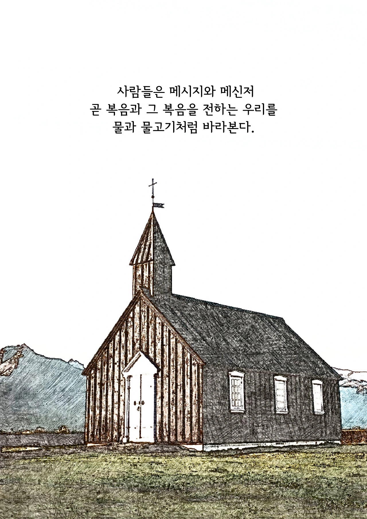 영악한 사람들은 메시지(내용)가 아니라 메신저(전달자)를 공격한다. 메신저의 신뢰가 메시지의 신뢰를 좌우하기 때문이다. 메신저가 신뢰를 잃으면 아무리 메시지가 좋아도 소용없는 이유가 바로 여기에 있다. 우리가 전하는 복음도 이와 같다. 사람들은 메시지와 메신저 곧 복음과 그 복음을 전하는 우리를 물과 물고기처럼 바라본다. 그렇기 때문에 우리는 교회를 잘 다니거나 주일성수를 잘하는 것보다, 내가 믿는 복음이 찐인지 교회를 다닌다고 하는 내가 찐인지부터 살펴봐야 한다.