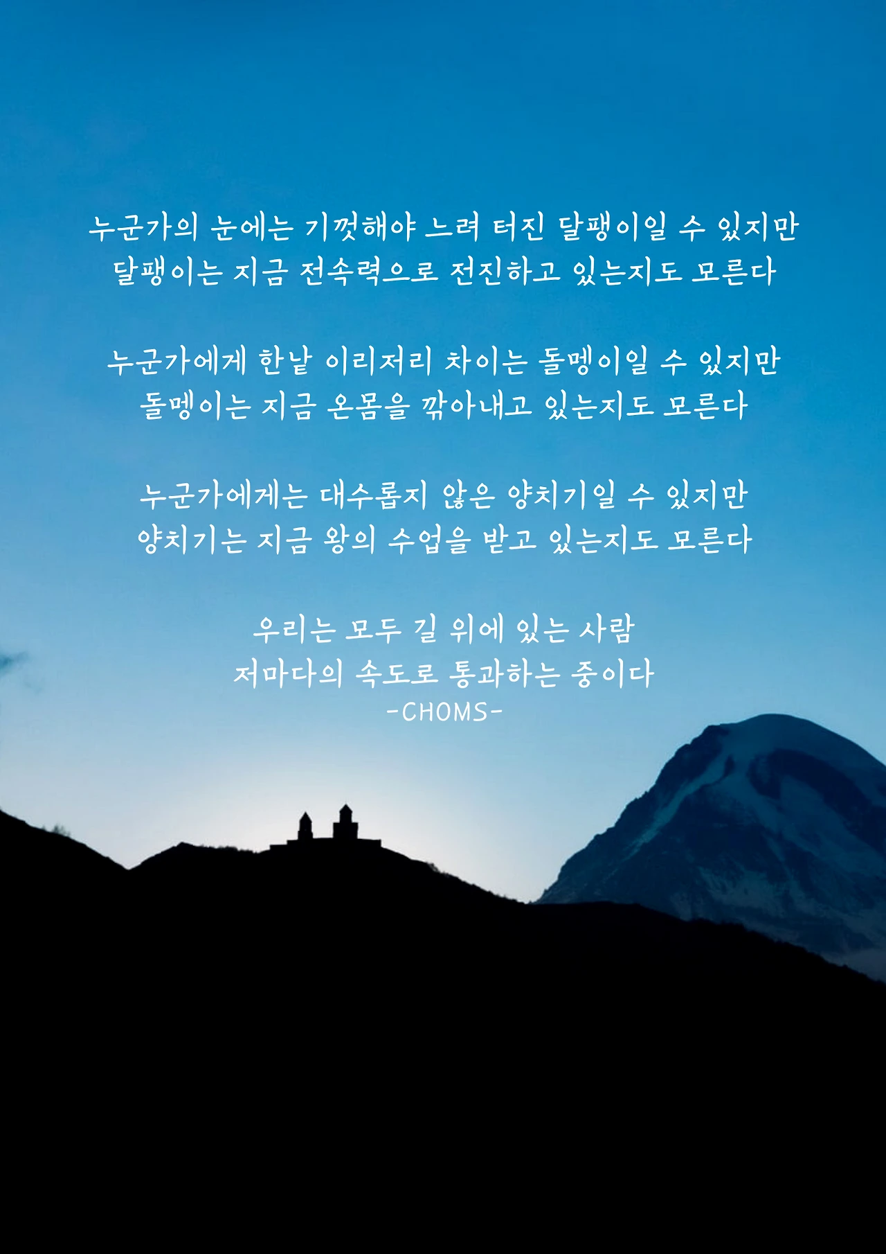 돌멩이는 지금 온몸을 깎아내고 있는지도 모른다