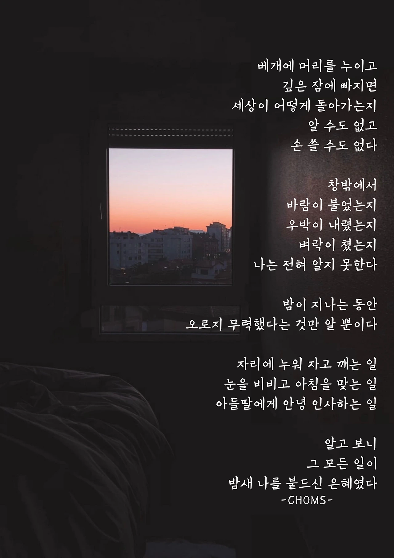 베개에 머리를 누이고